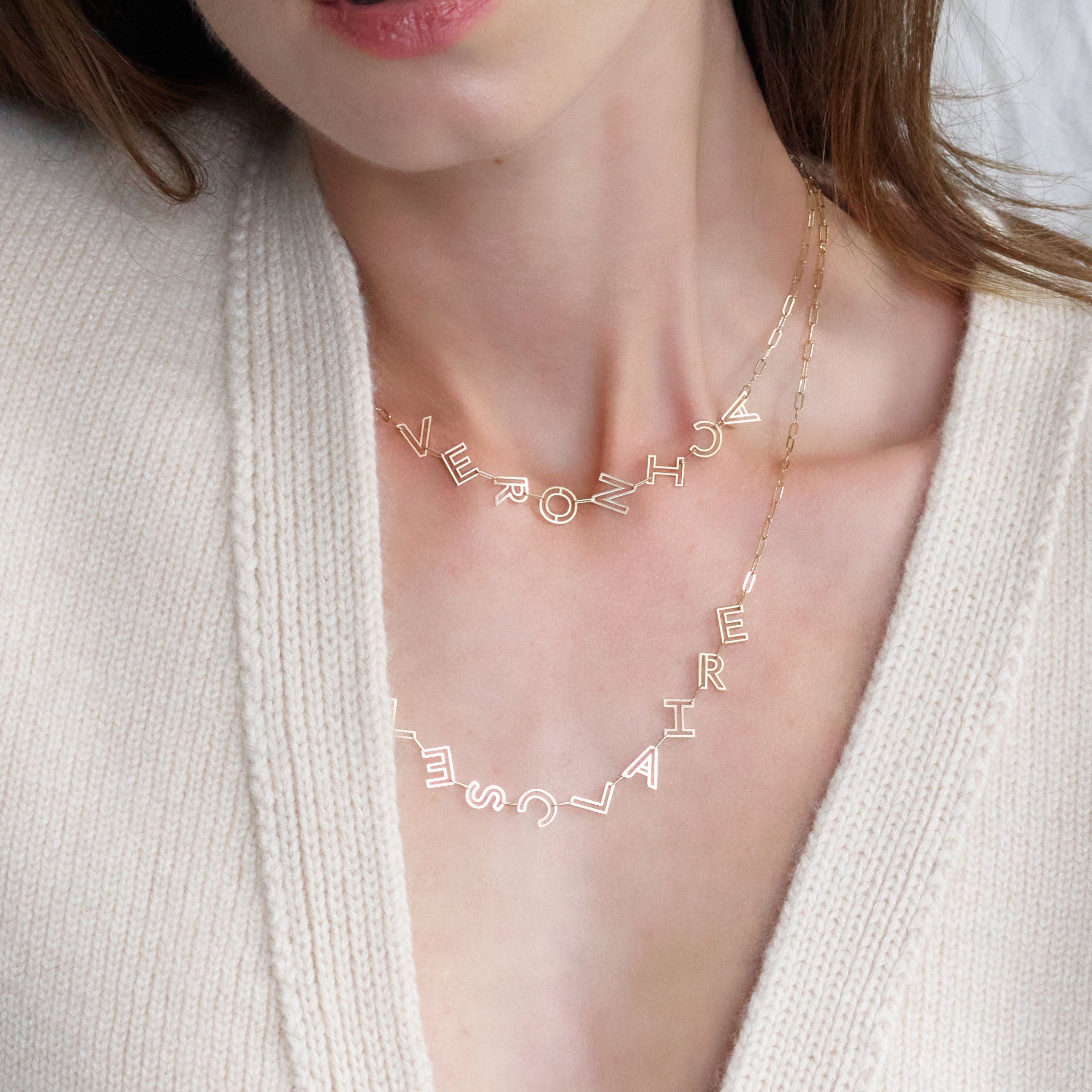 “Chain Letter Neons are an affordable piece of fine jewelry you can wear every day.”