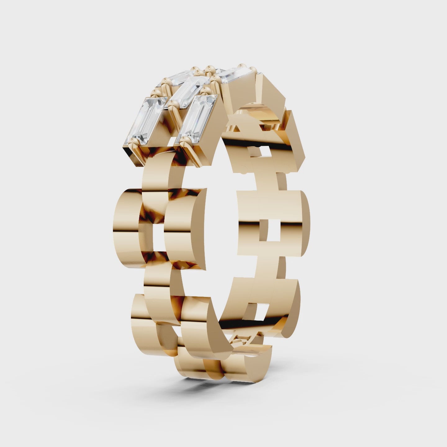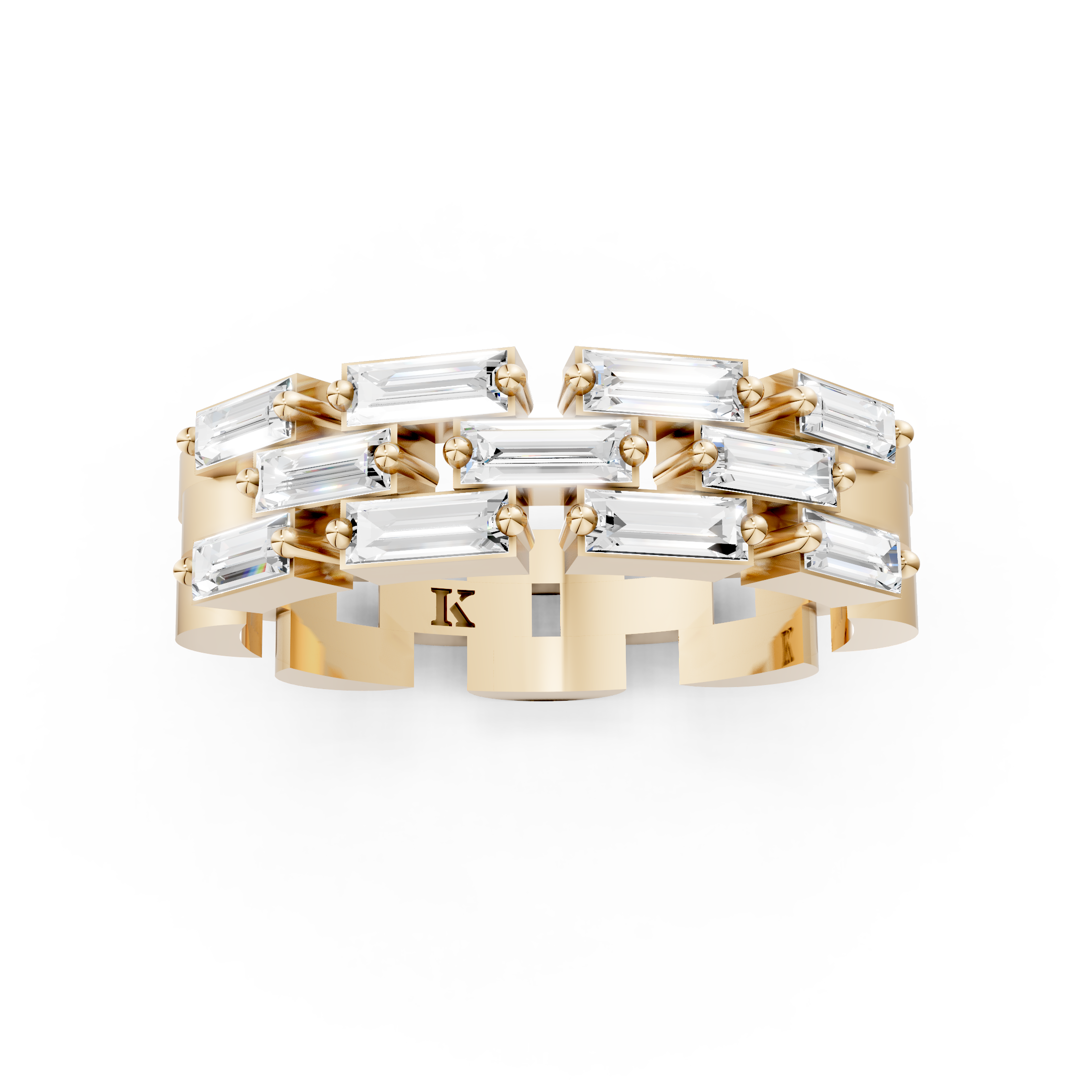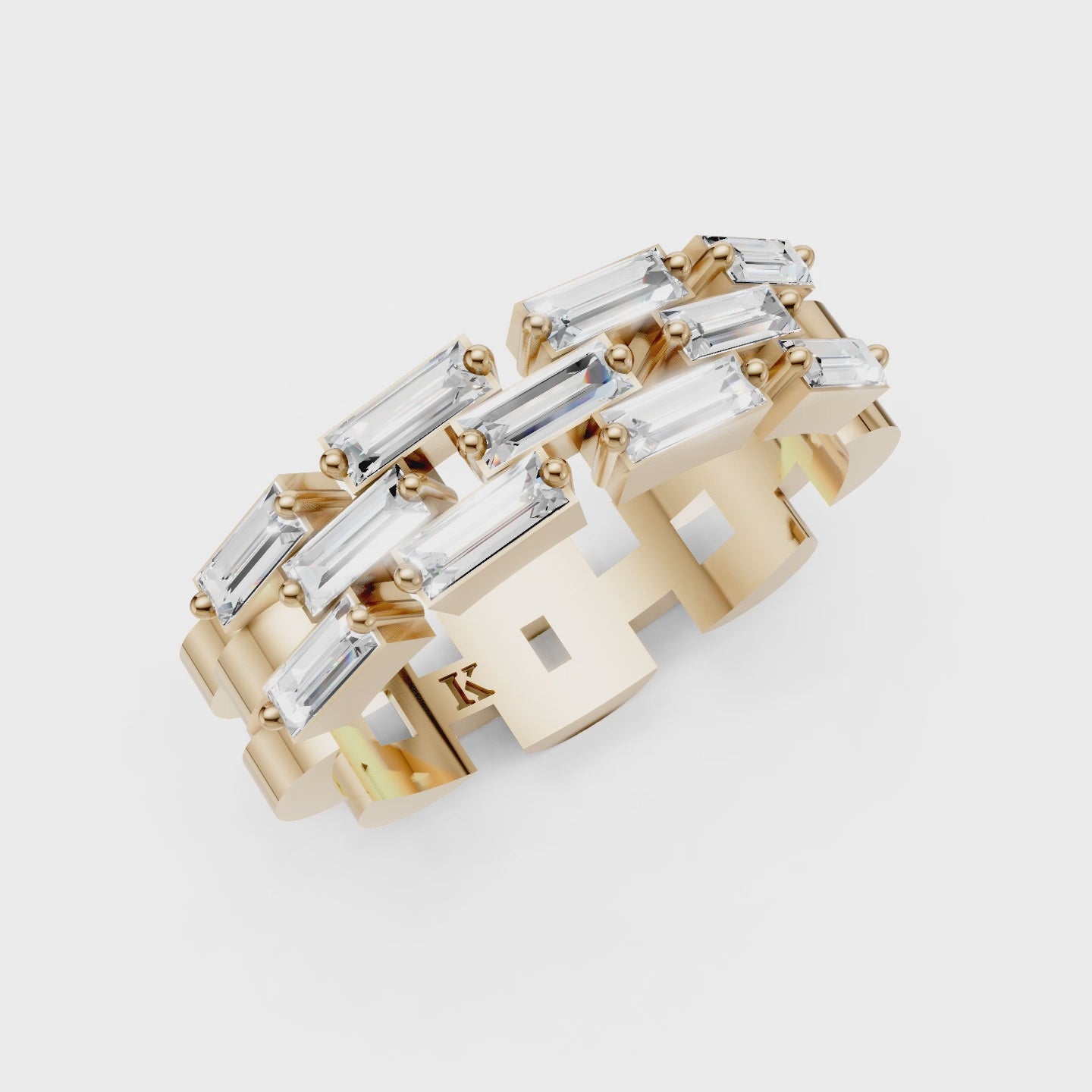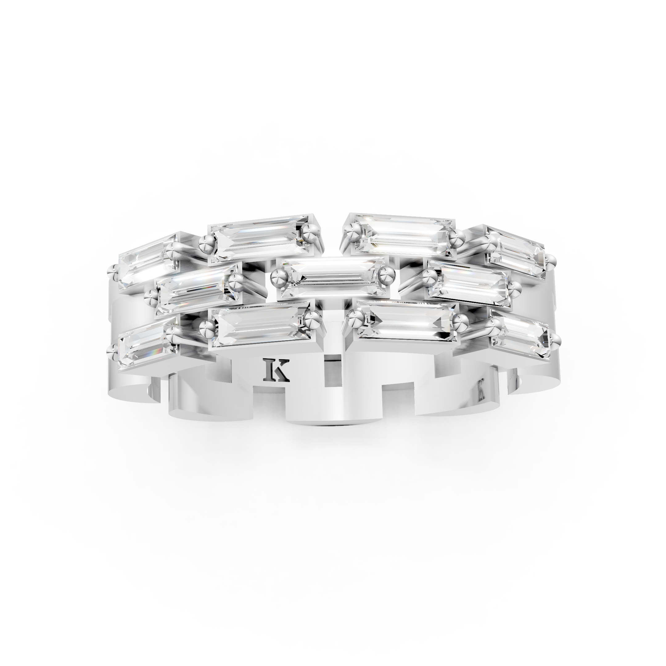 This ring is inspired by the knotting of a classic cotton friendship bracelet, reinterpreted in the most luxurious way through the use of stunning baguette diamonds.