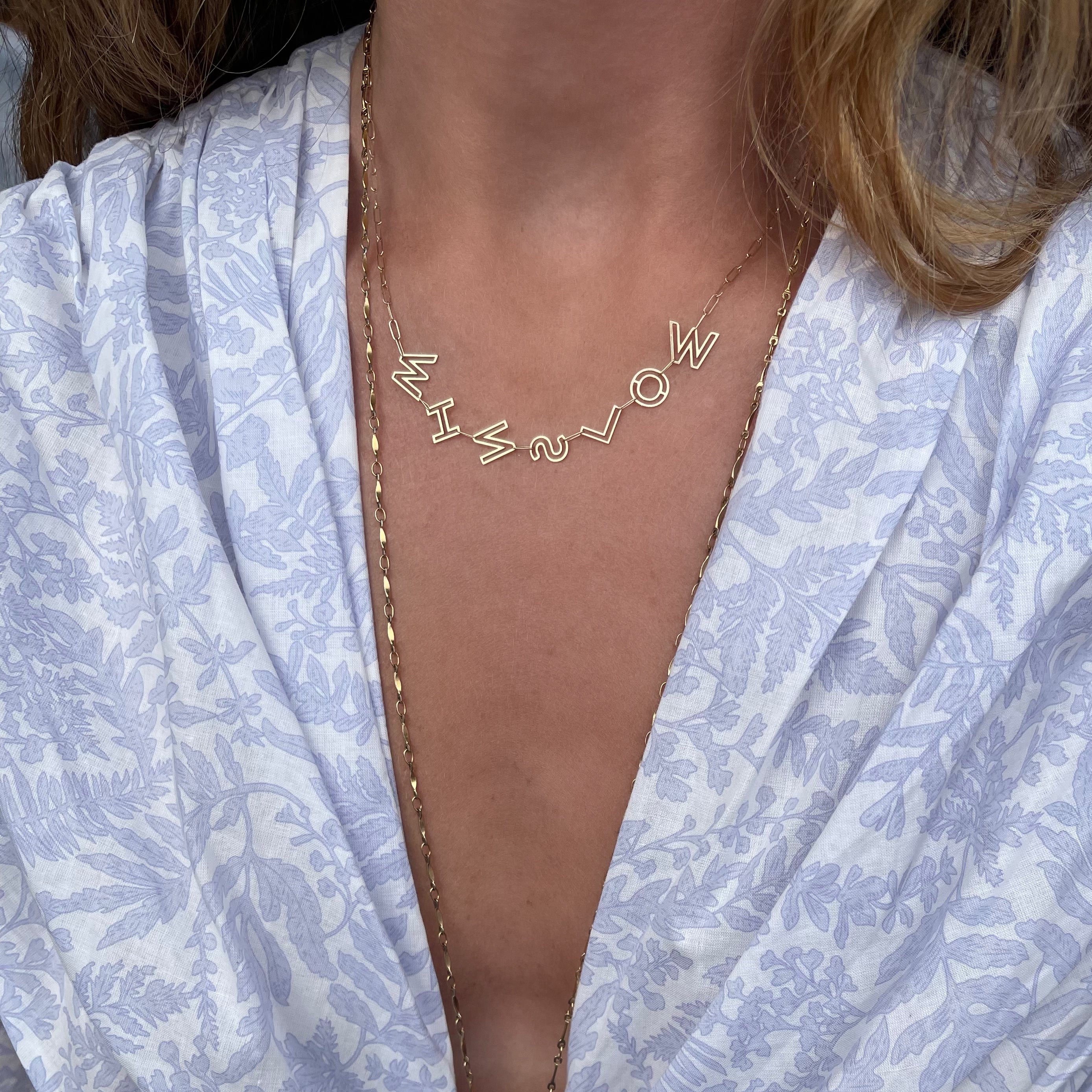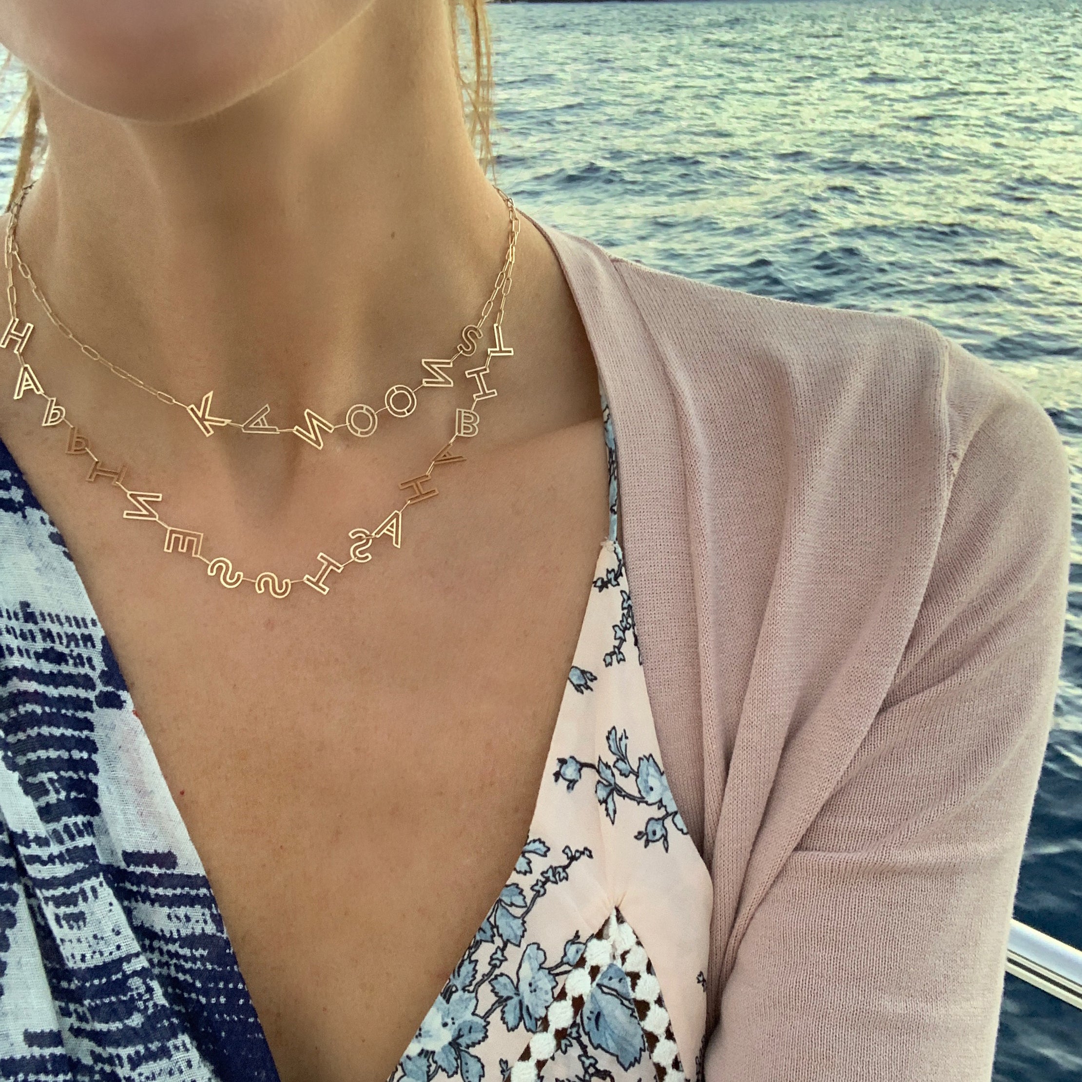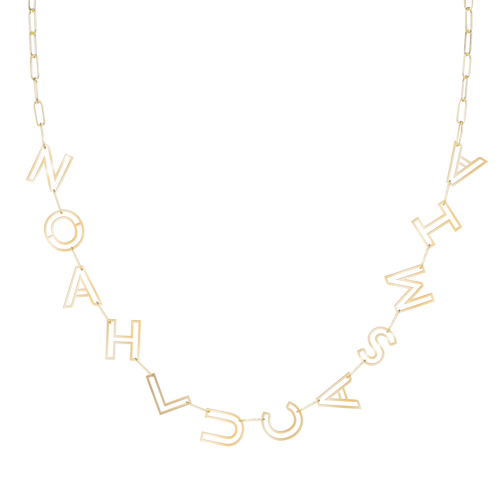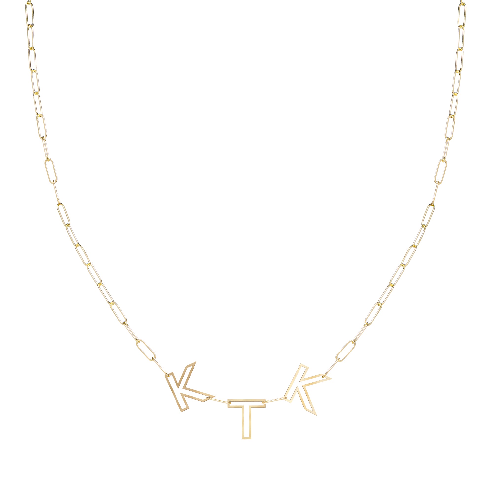 Hollywood's go-to personalized necklace (see our Celeb Page!) and K Kane's all time best seller. Solid gold letters, shapes, and numbers are designed to look, move, and function like links in the chain.
