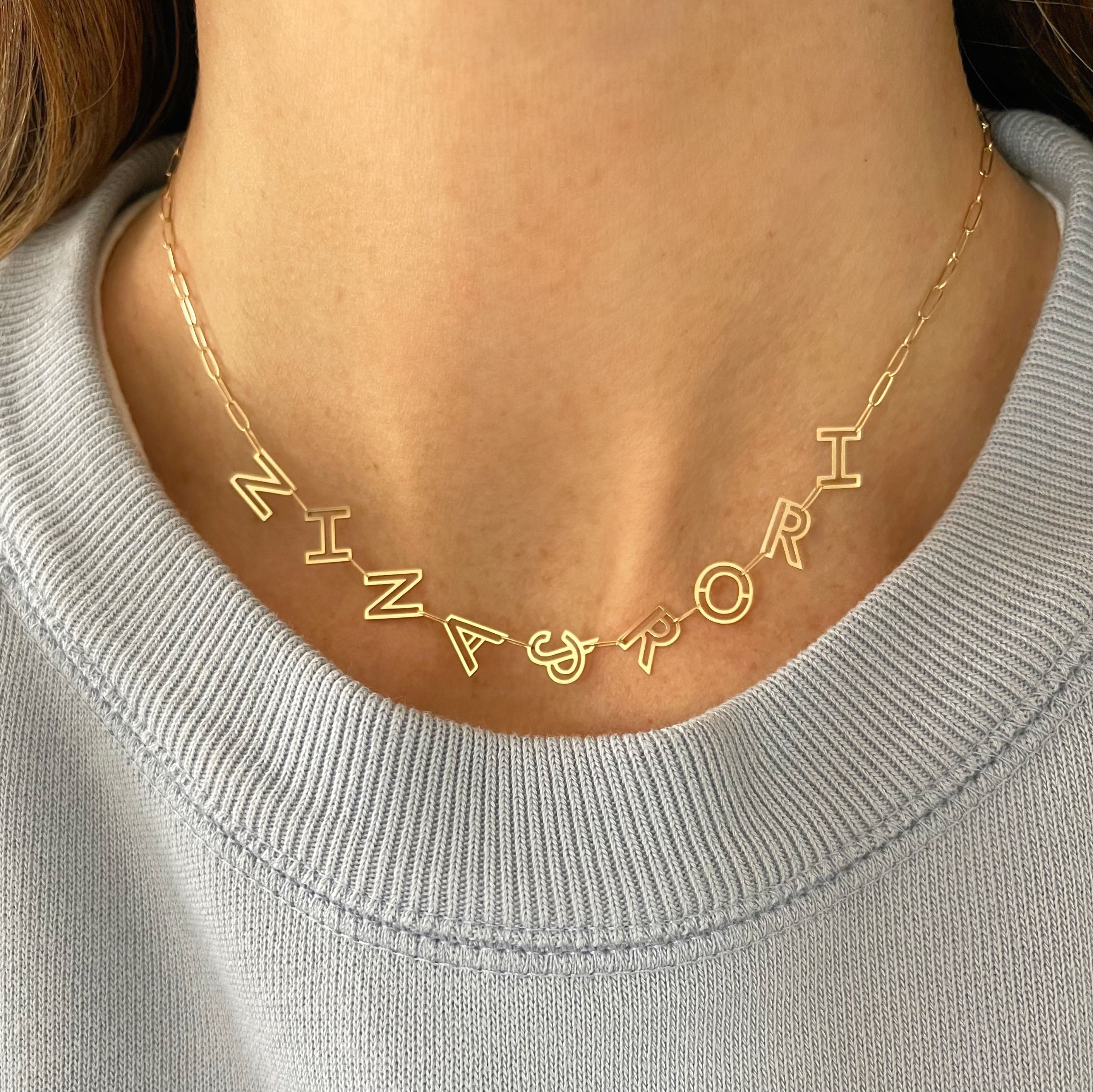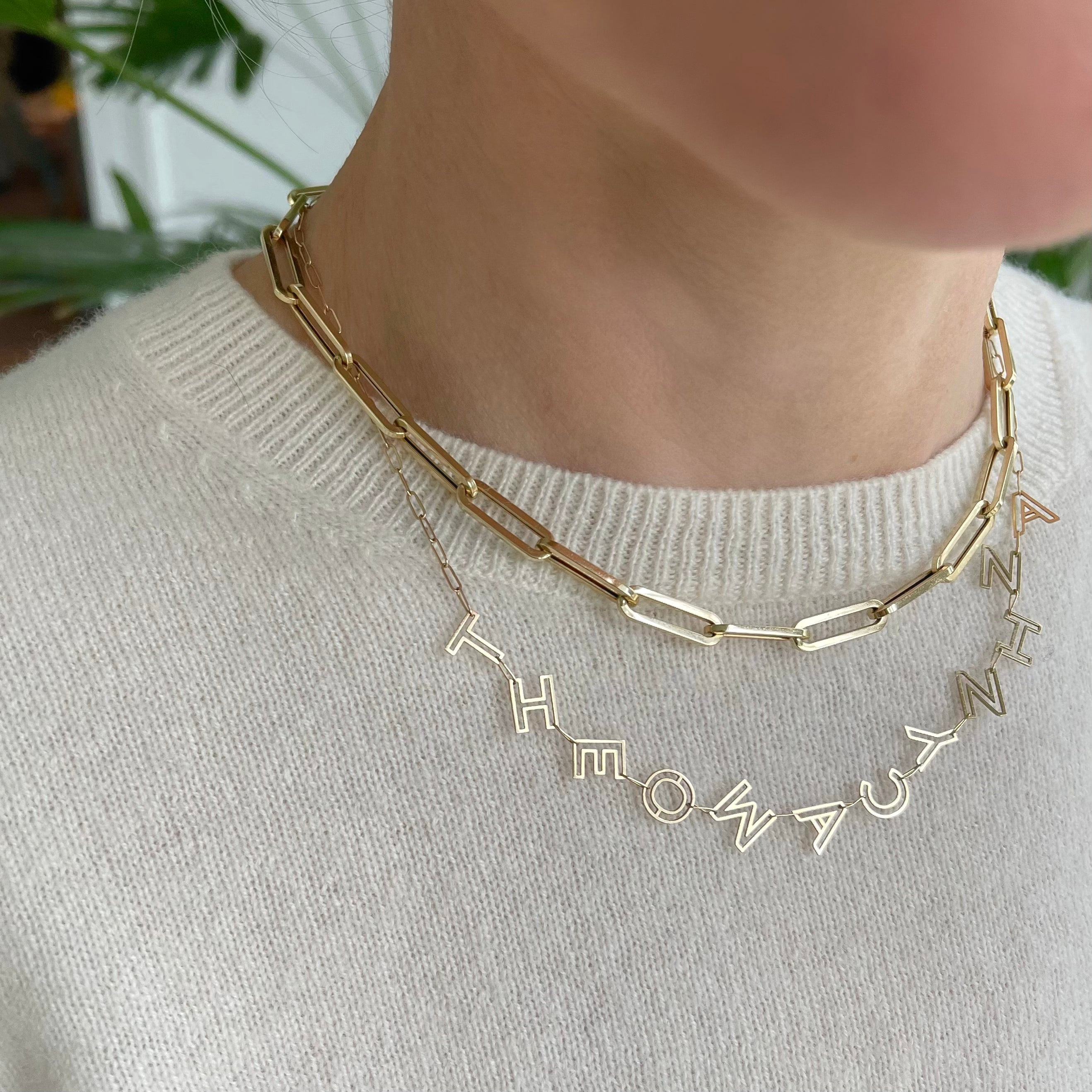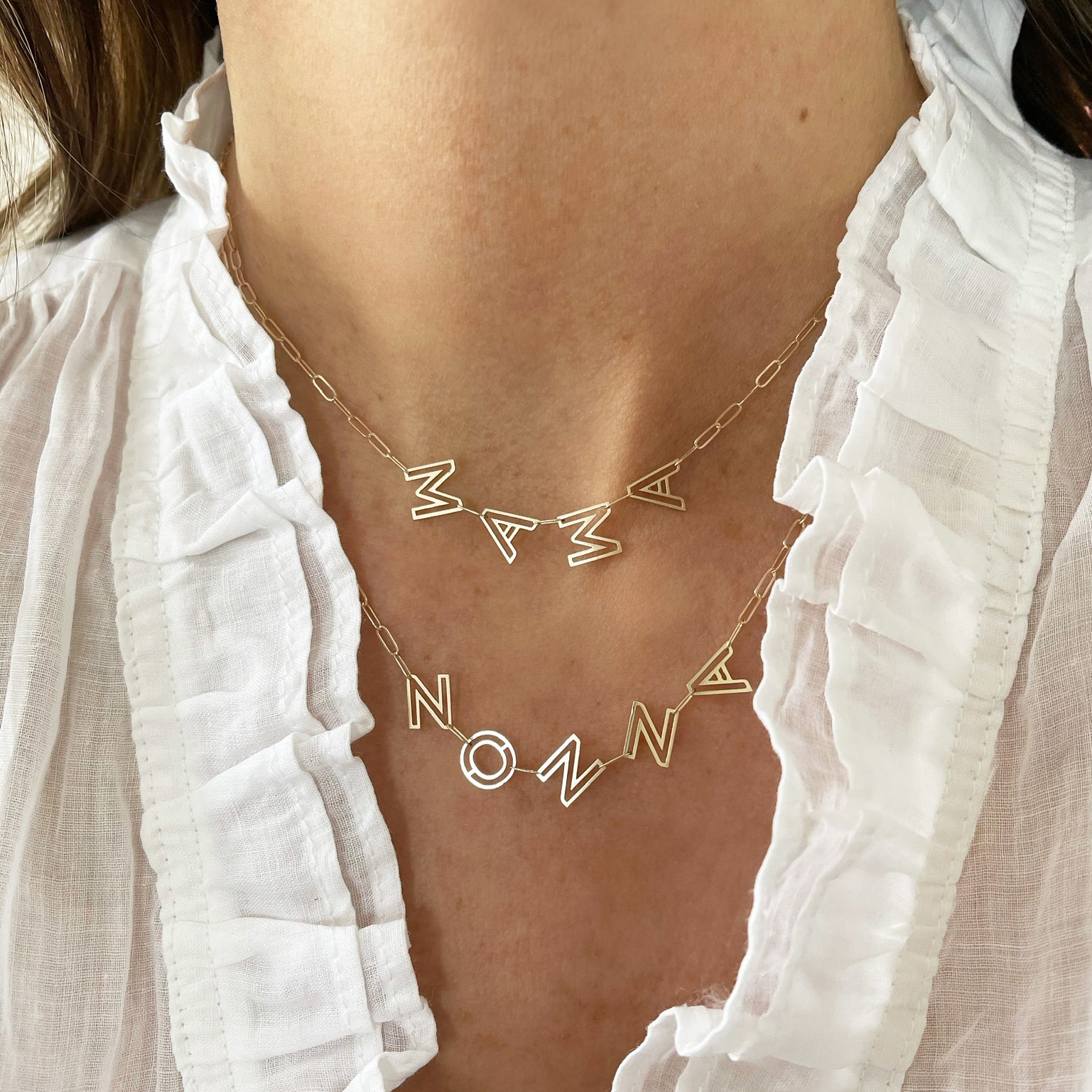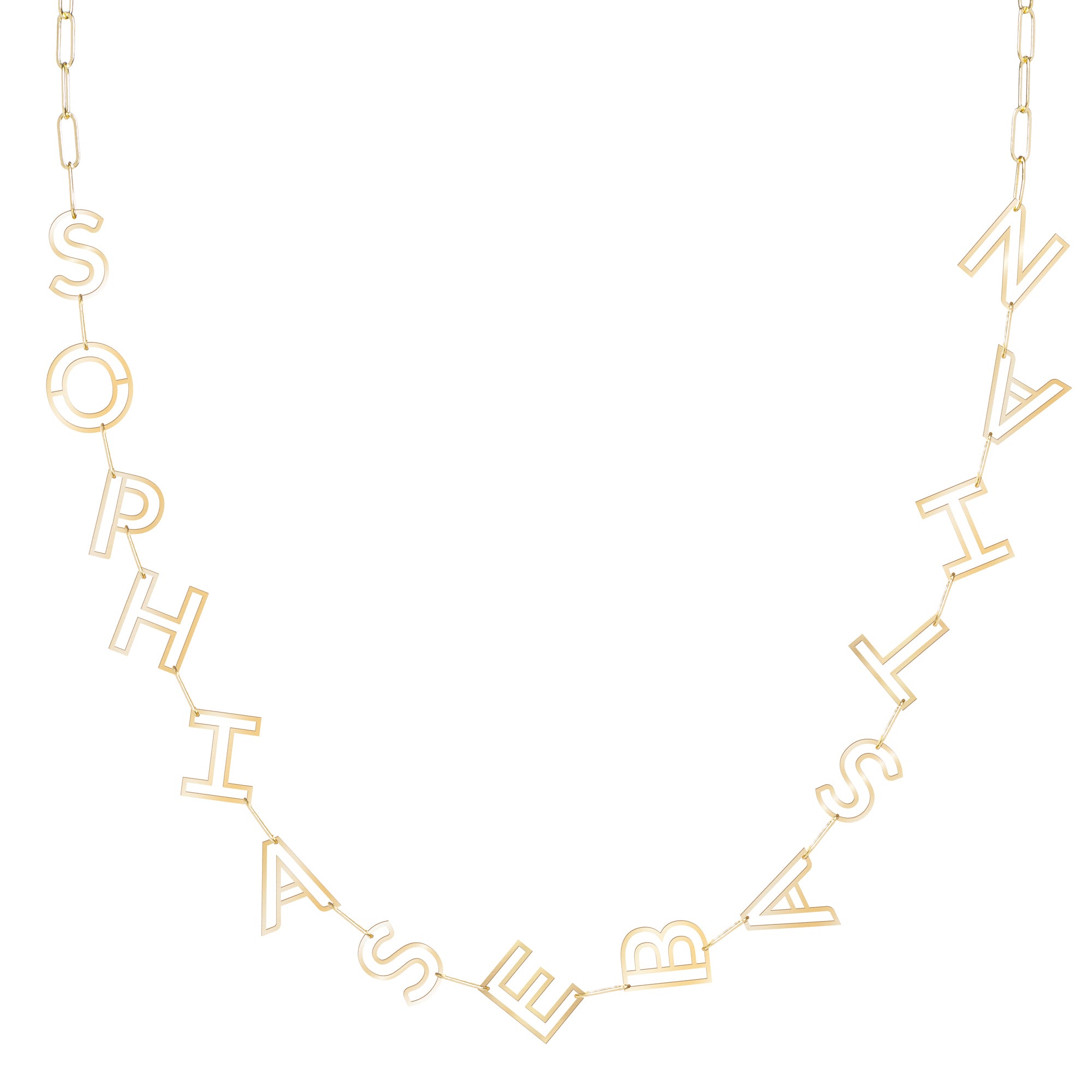 Hollywood's go-to personalized necklace (see our Celeb Page!) and K Kane's all time best seller. Solid gold letters, shapes, and numbers are designed to look, move, and function like links in the chain.