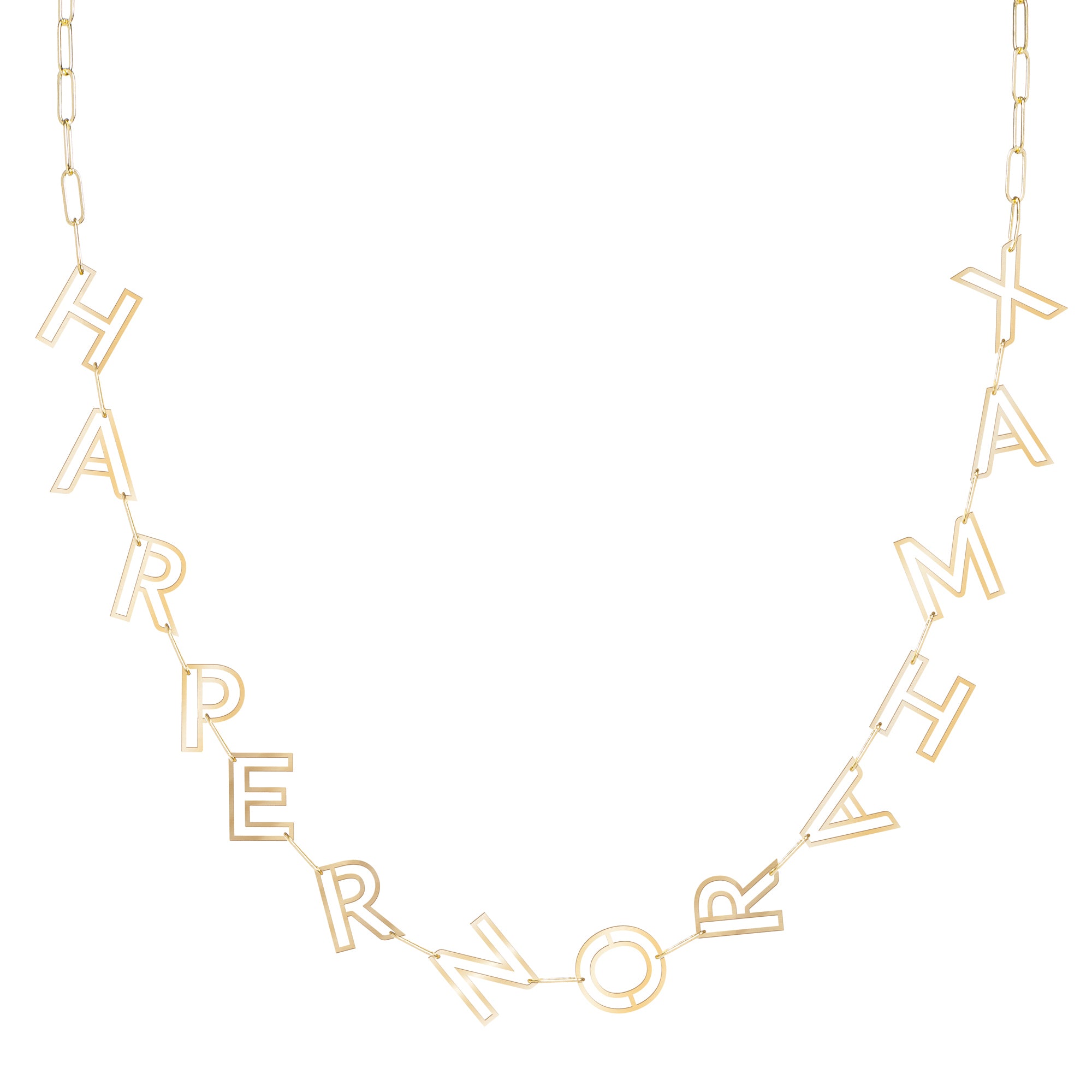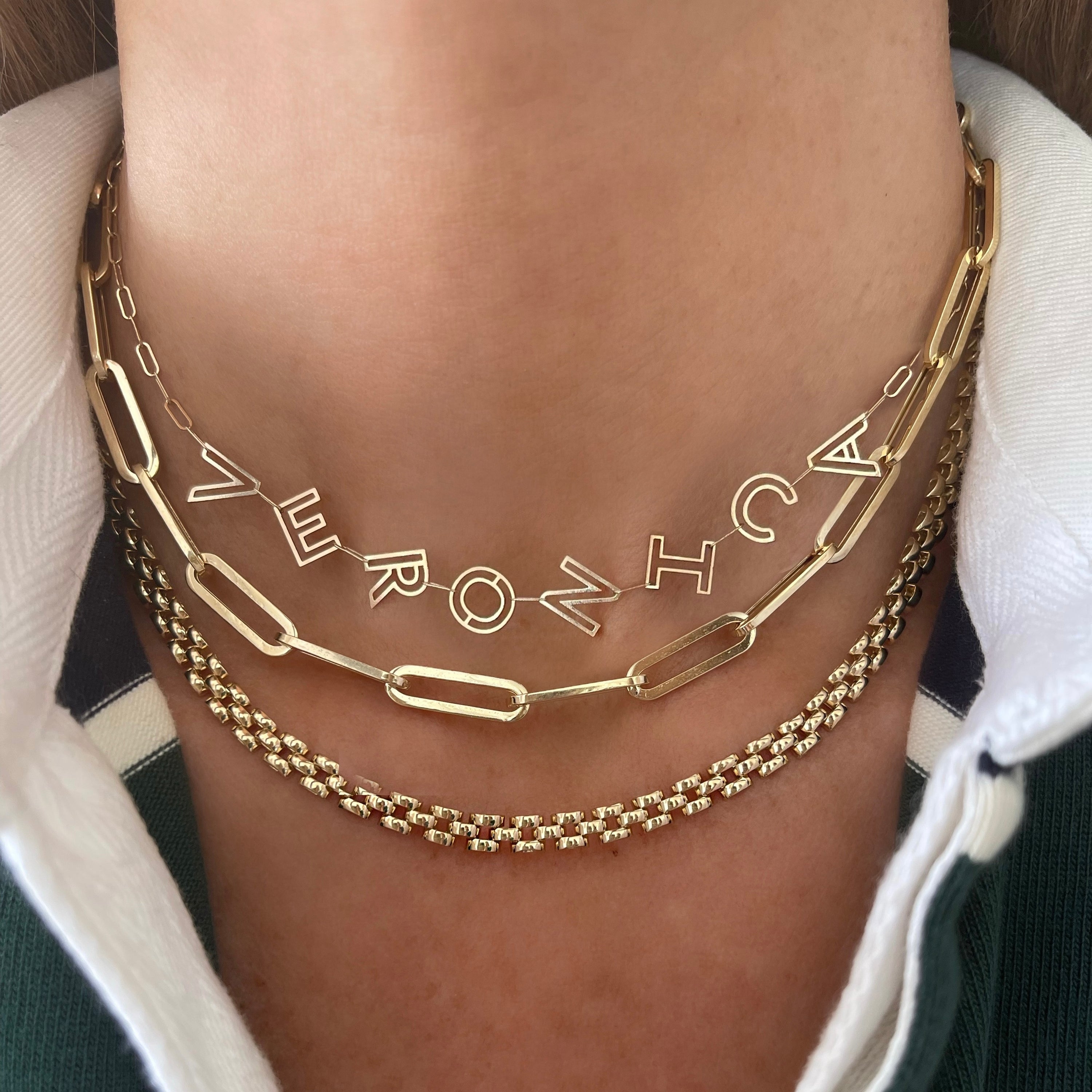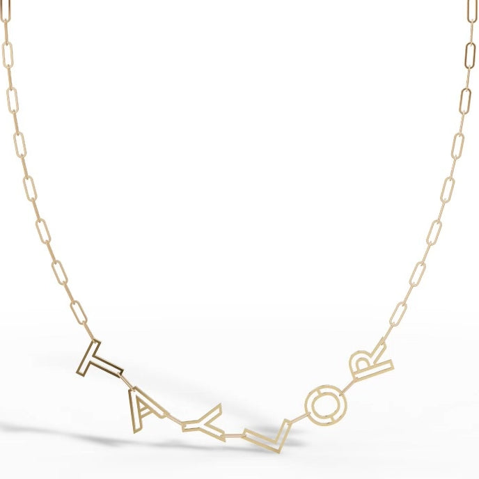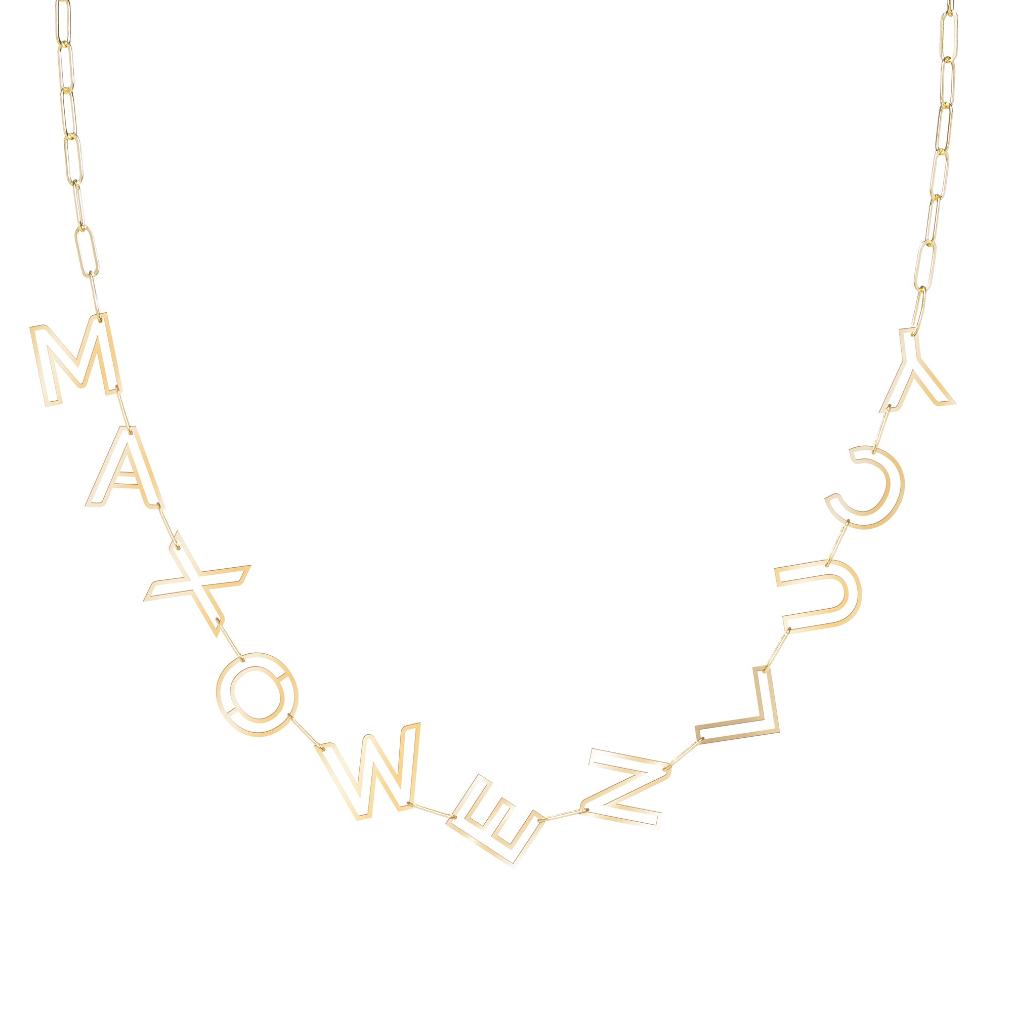 Hollywood's go-to personalized necklace (see our Celeb Page!) and K Kane's all time best seller. Solid gold letters, shapes, and numbers are designed to look, move, and function like links in the chain.
