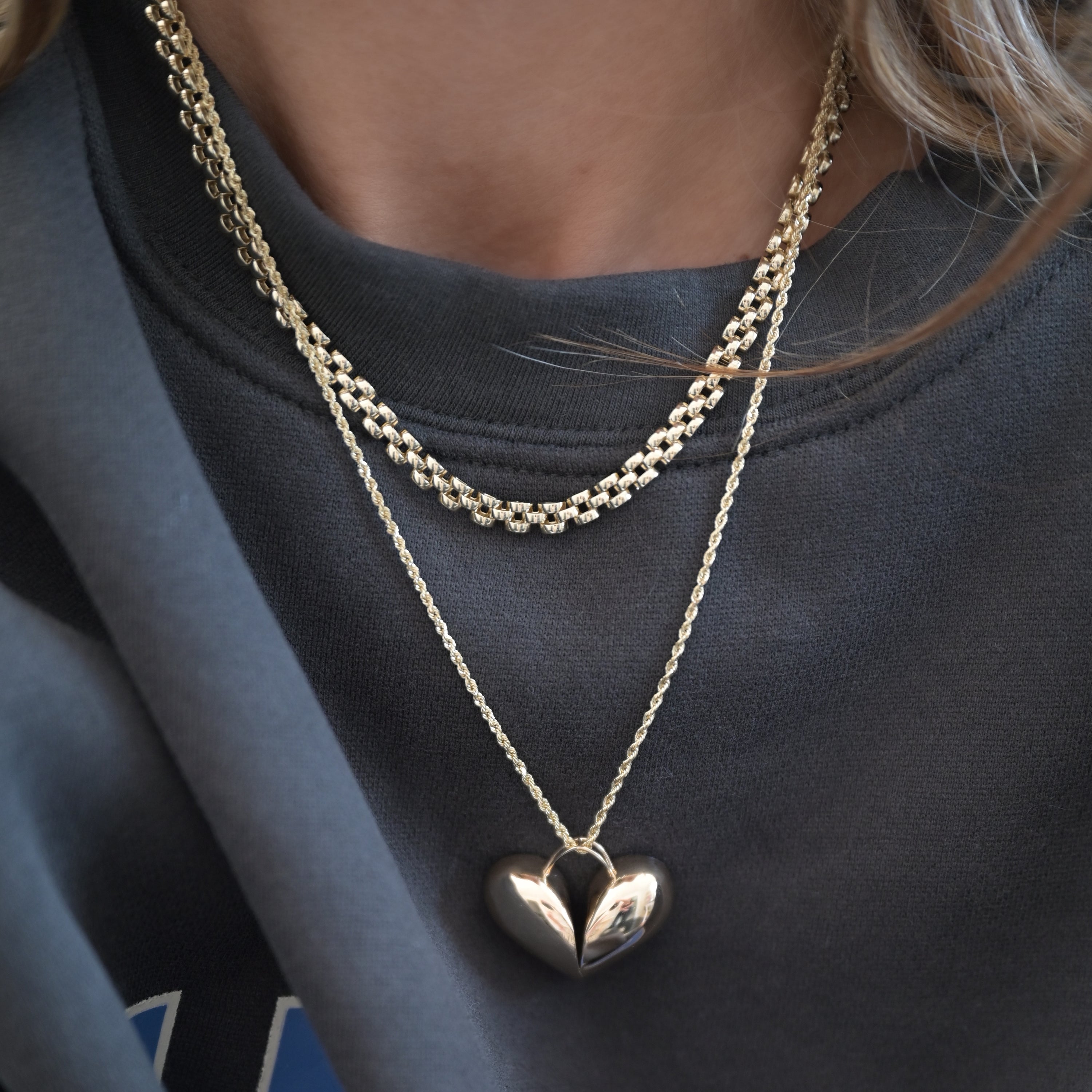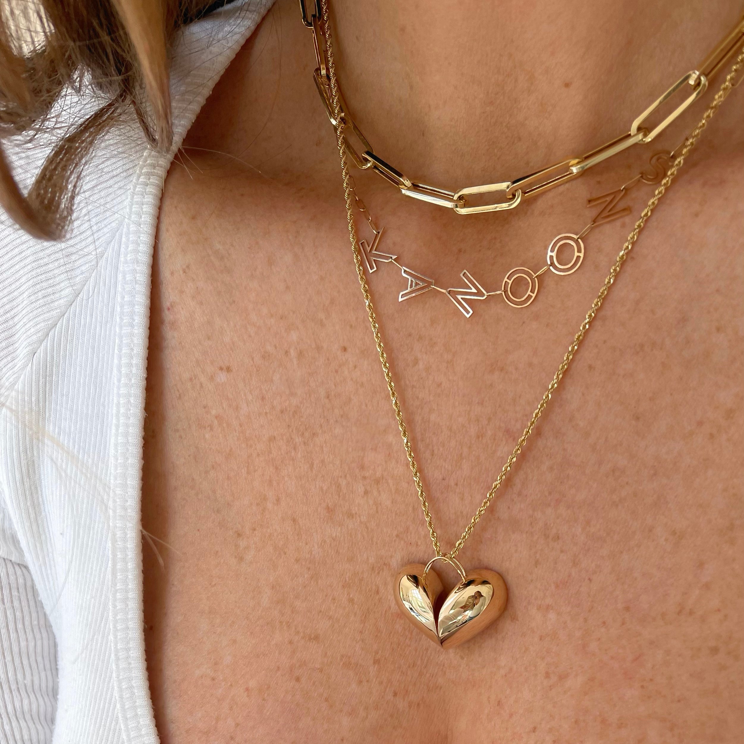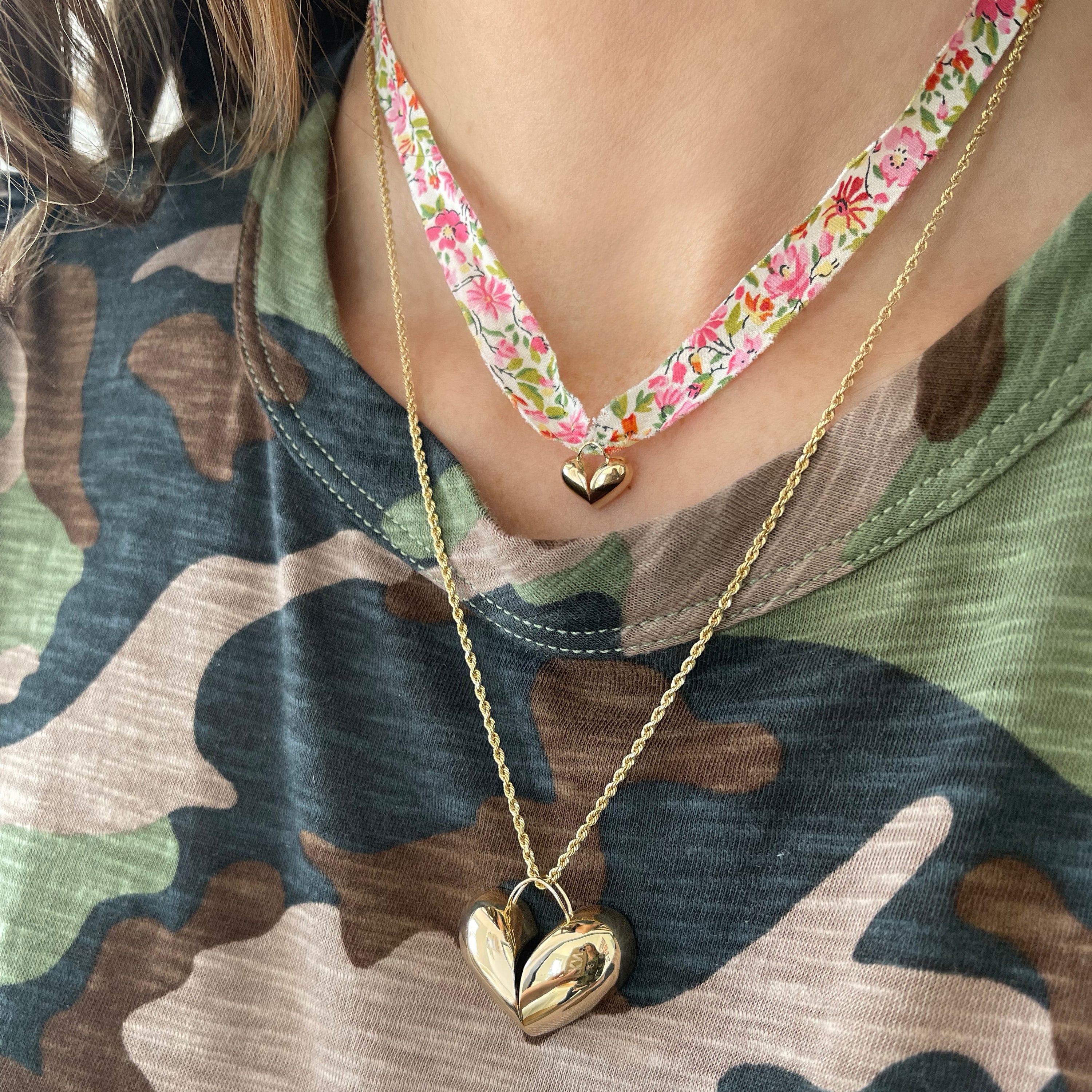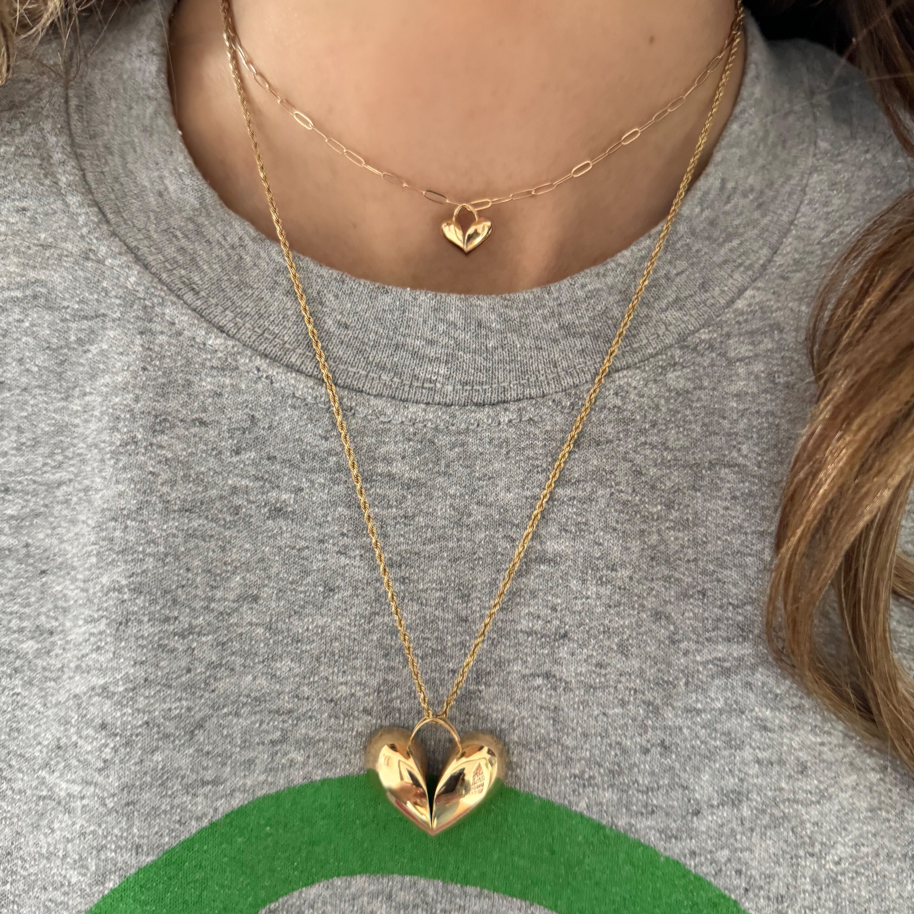 14K Yellow Gold Heart (21mm) Charm. Set on a 20" 1.6mm Chain.
