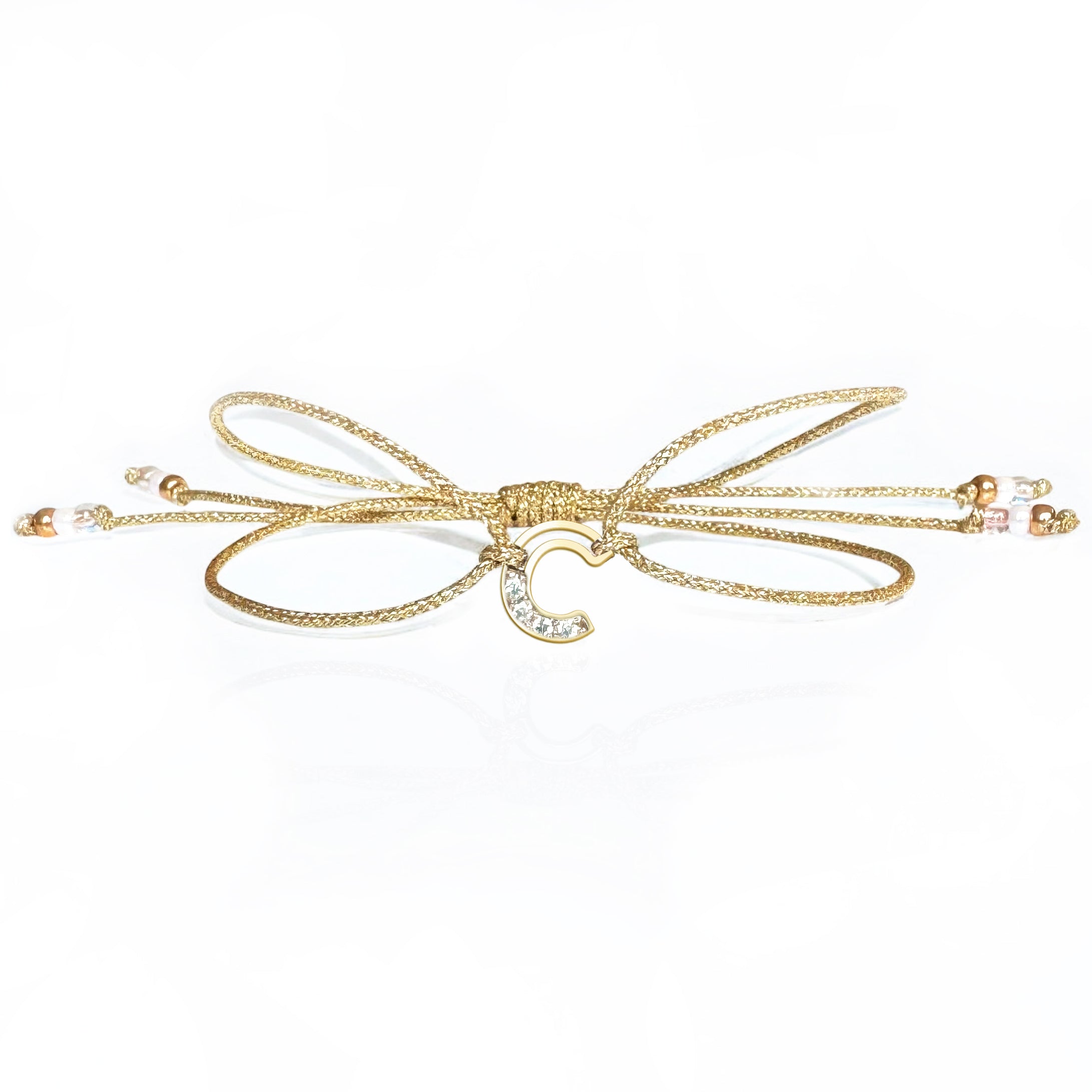 Chain Letter Cords are BACK and better than ever!! Our iconic 14k gold natural Diamond Chain Letters - knotted on luxe golden cord and finished with shimmering glass beads.