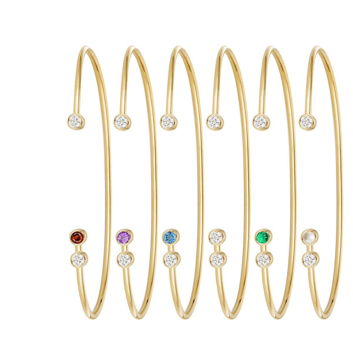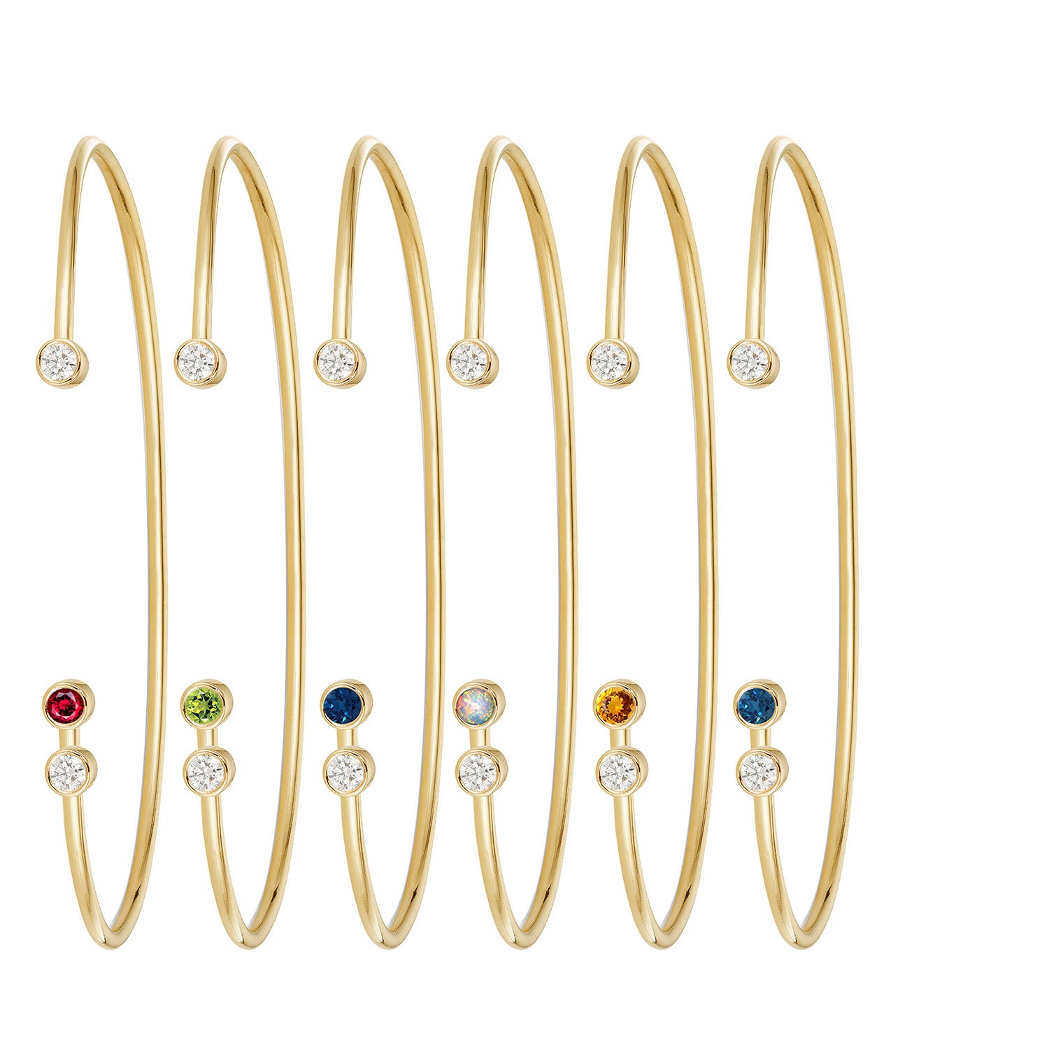 Your universe is lit by the people you love. Meet our Galaxy Birthstone Cuff. The birthstone you choose marks a star in your galaxy. Two diamonds are locked into the design - one to ground you, the other to guide you.