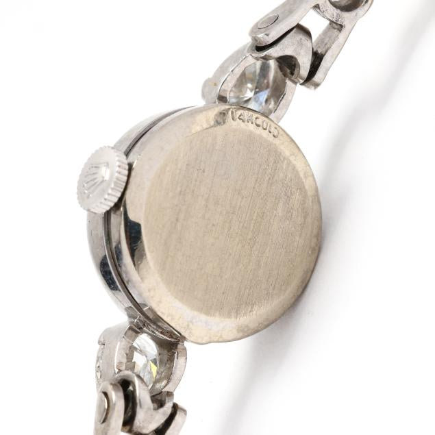 Dimensions: Case diameter 15mm; bracelet length 6 1/8 inches. Total weight: 9.2 dwt (excluding movement).