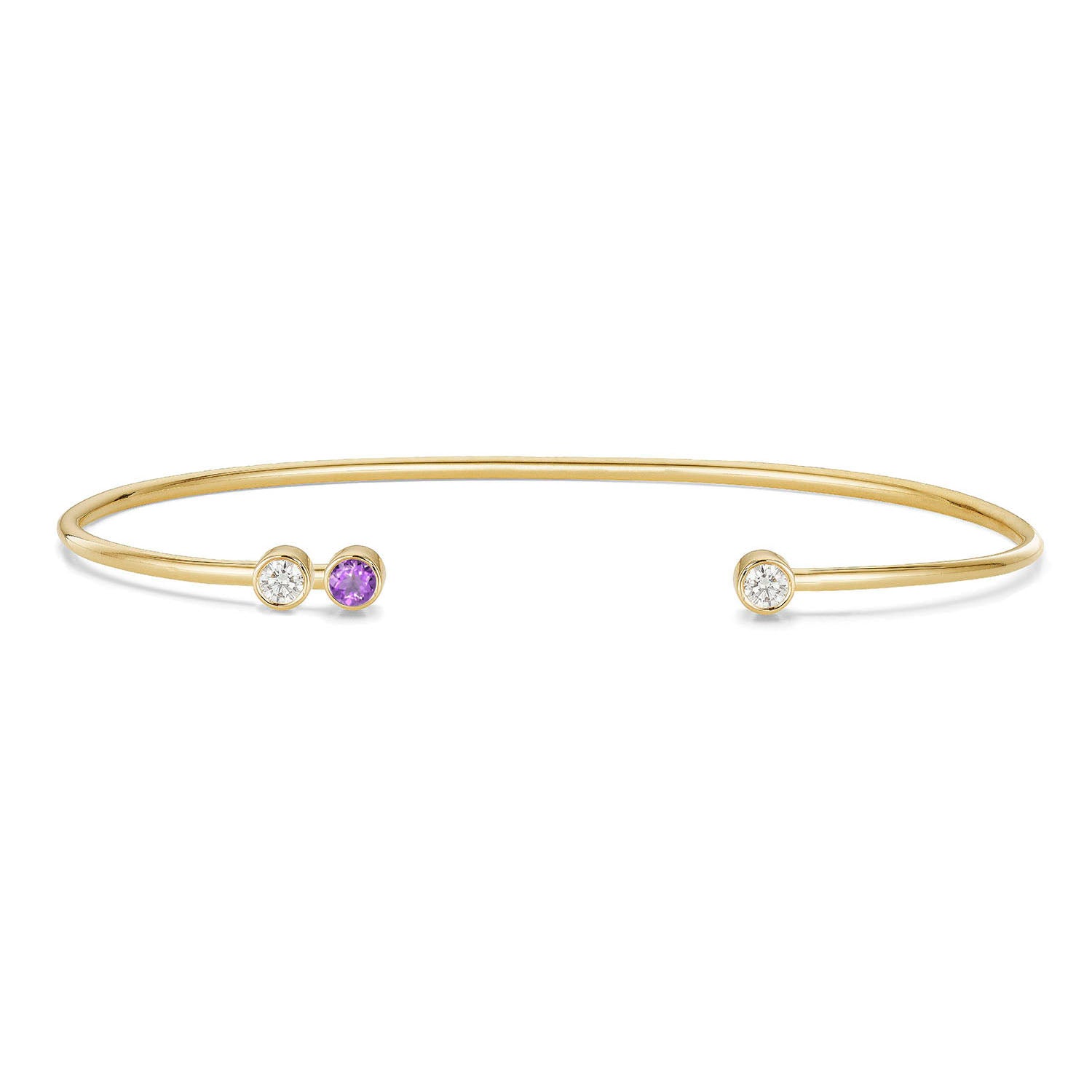 Your universe is lit by the people you love. Meet our Galaxy Birthstone Cuff. The birthstone you choose marks a star in your galaxy. Two diamonds are locked into the design - one to ground you, the other to guide you.