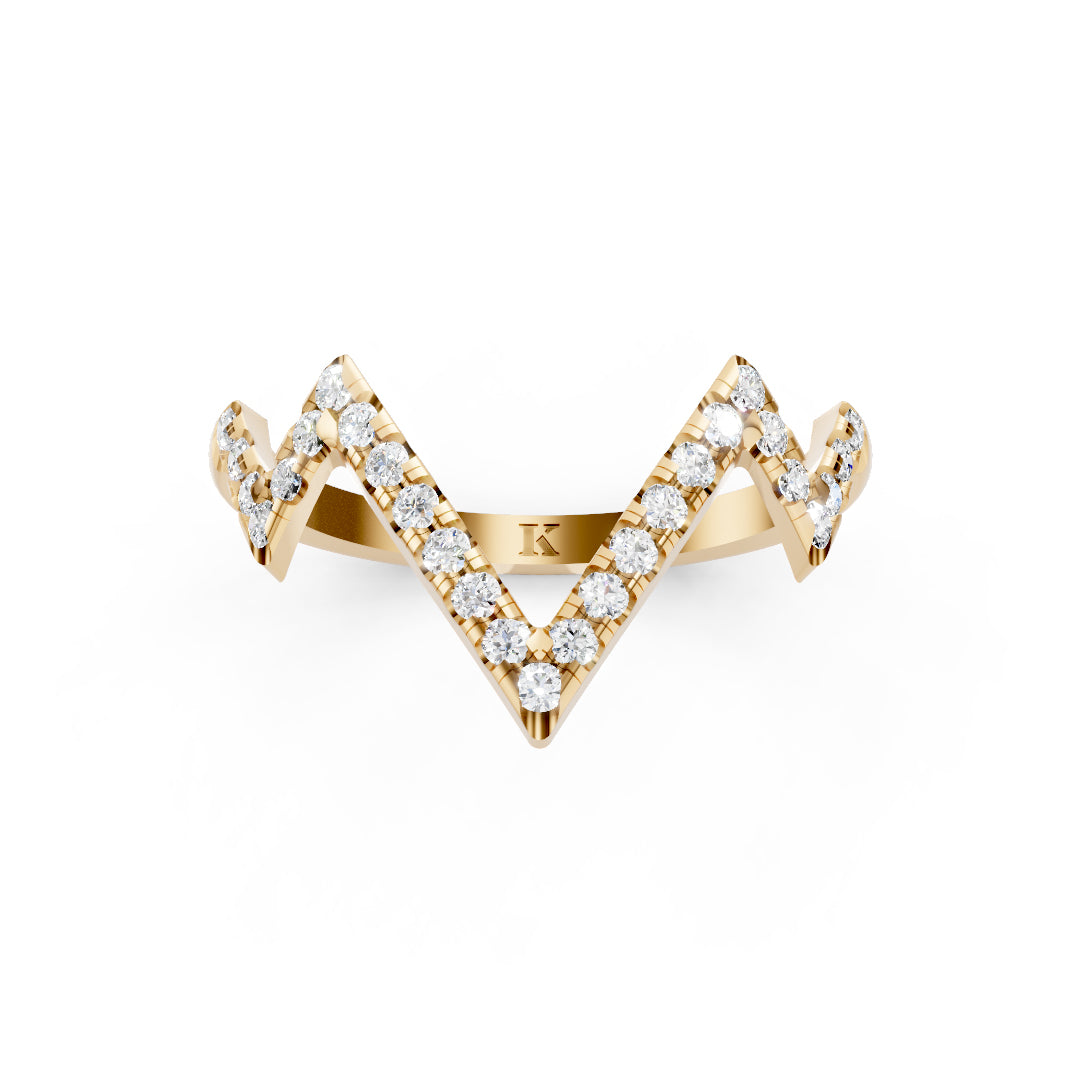 We originally designed our Diamond Heartbeat Band to pair with low set engagement rings featuring large vertical stones, such as ovals, marquise, pears, and emerald cuts. Then we discovered that this ring is exceptionally beautiful on its own, or layered with many, many other ring styles. Choose from our signature mixed metal tones of solid yellow gold, rose gold, and platinum.