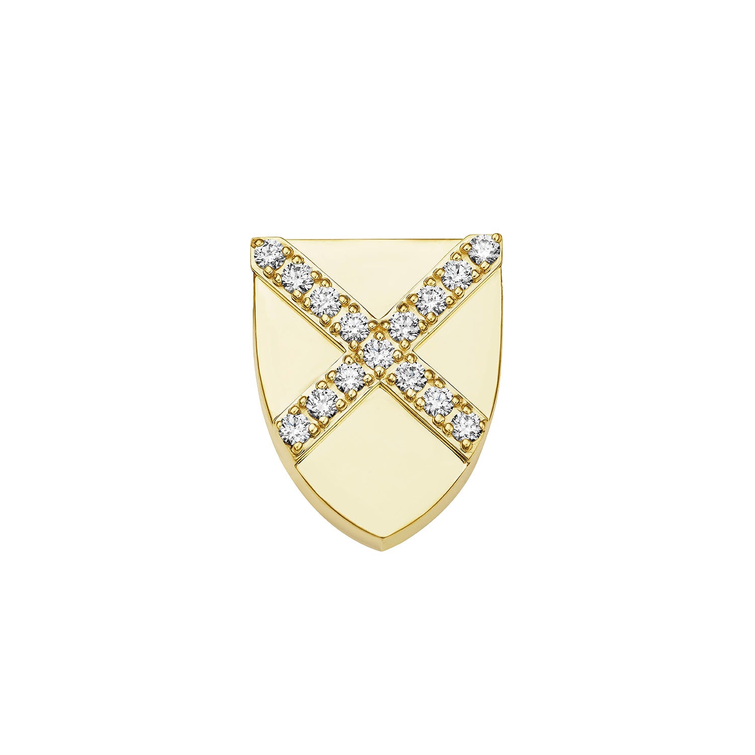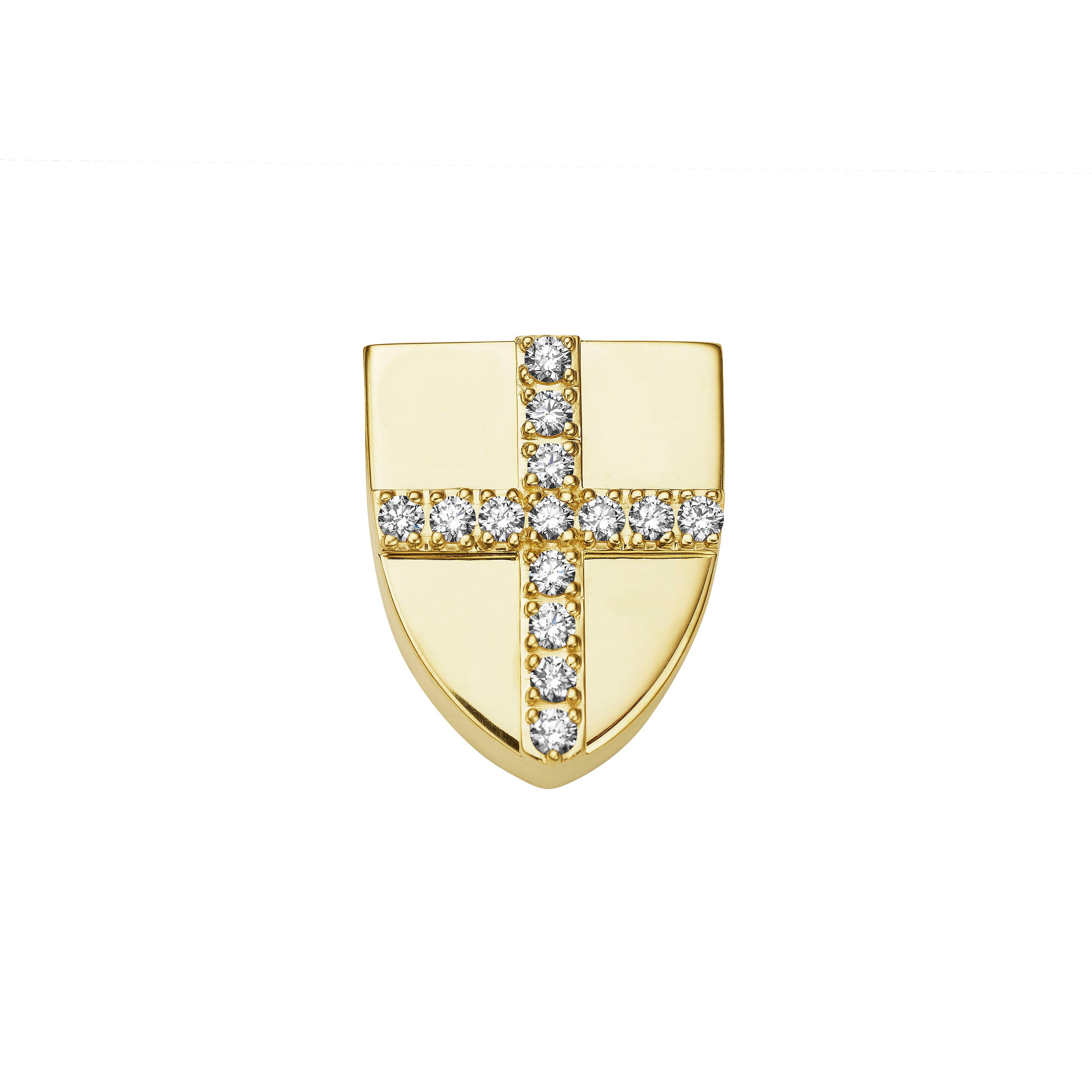 Solid 14K Yellow Gold Shield set on a 60" 3.3mm Convertible Chain. DEF/VS Quality Diamonds. If you would like to add engraving to the back of your pendant, write in the notes field what you would like it to say OR if you would like to use your own handwriting, please write in black ink and upload a photo below.