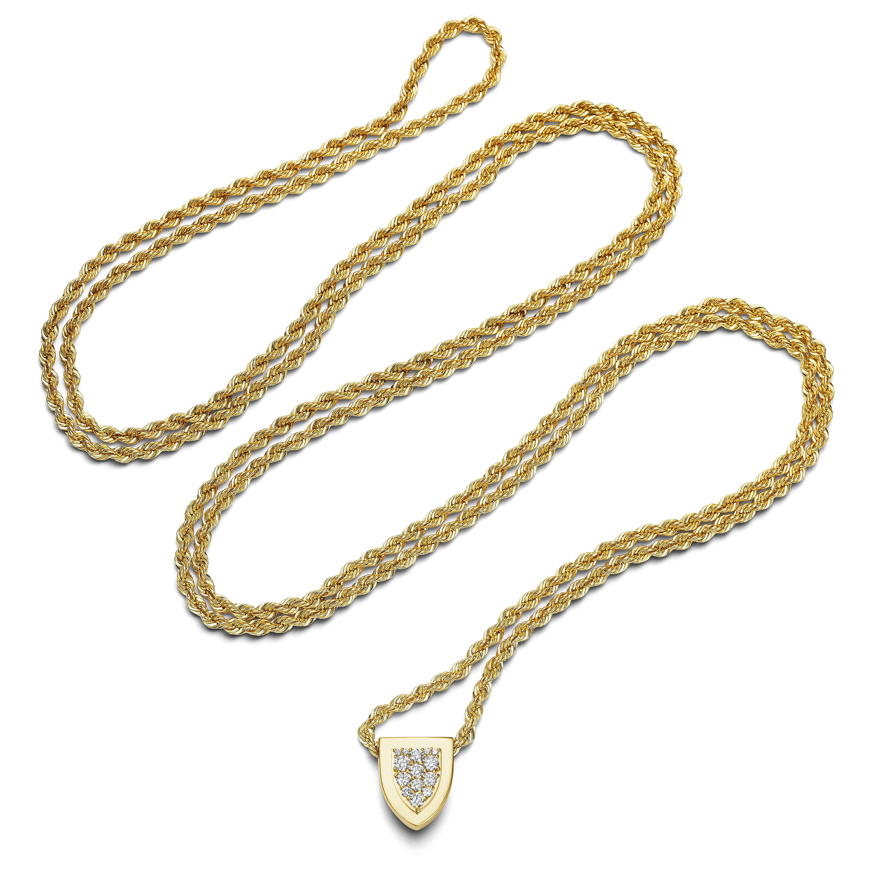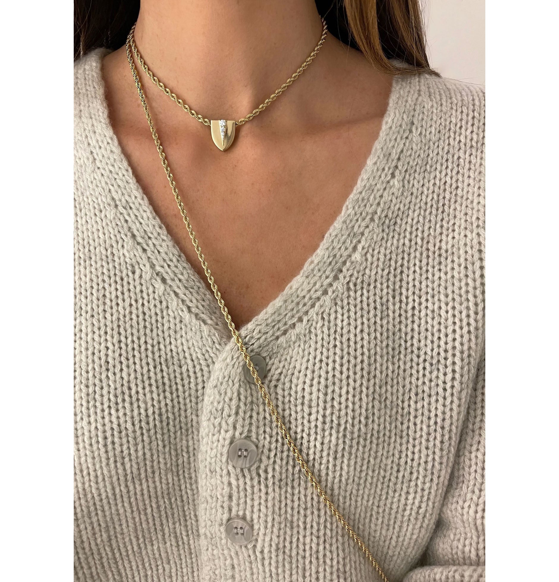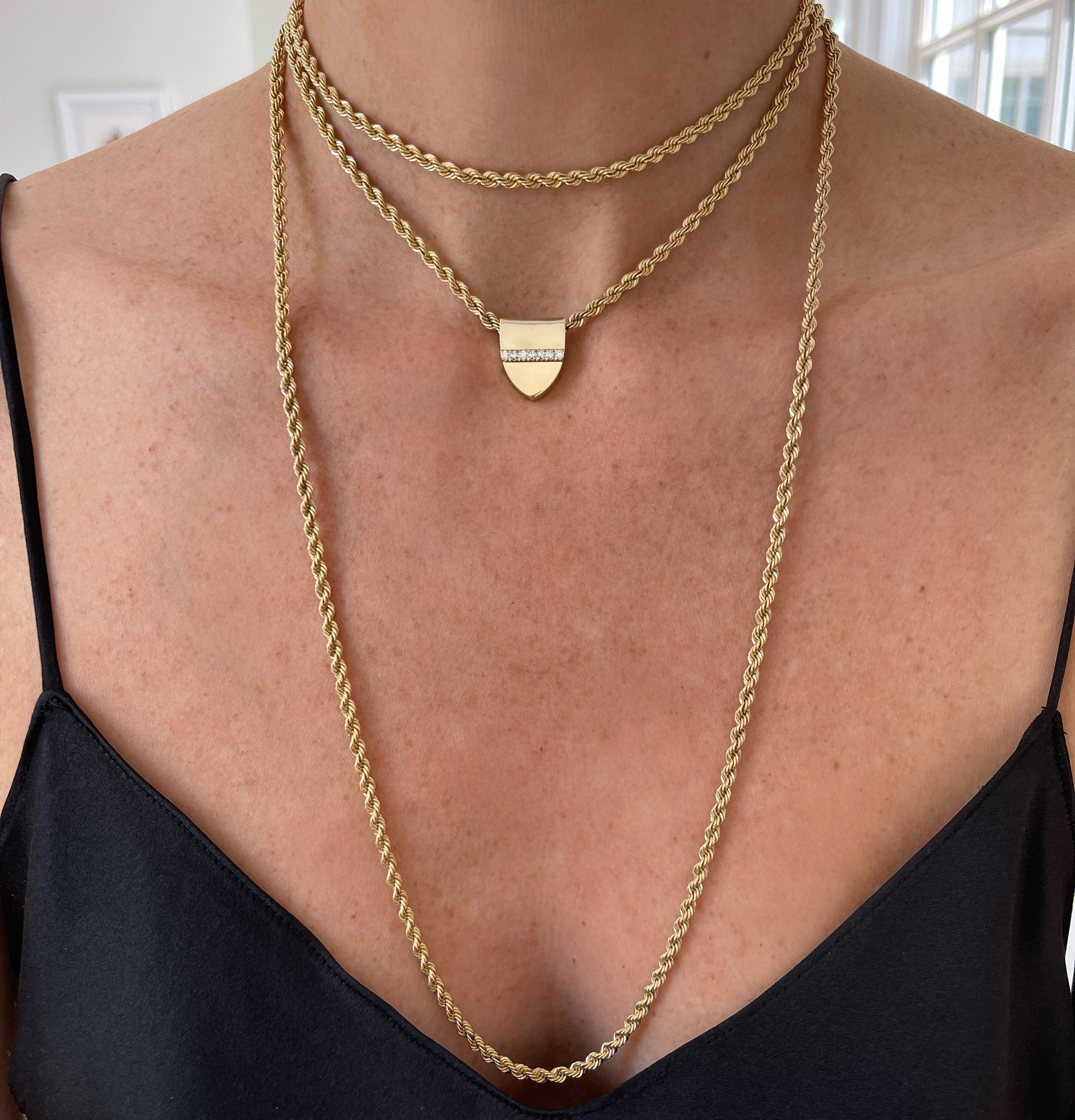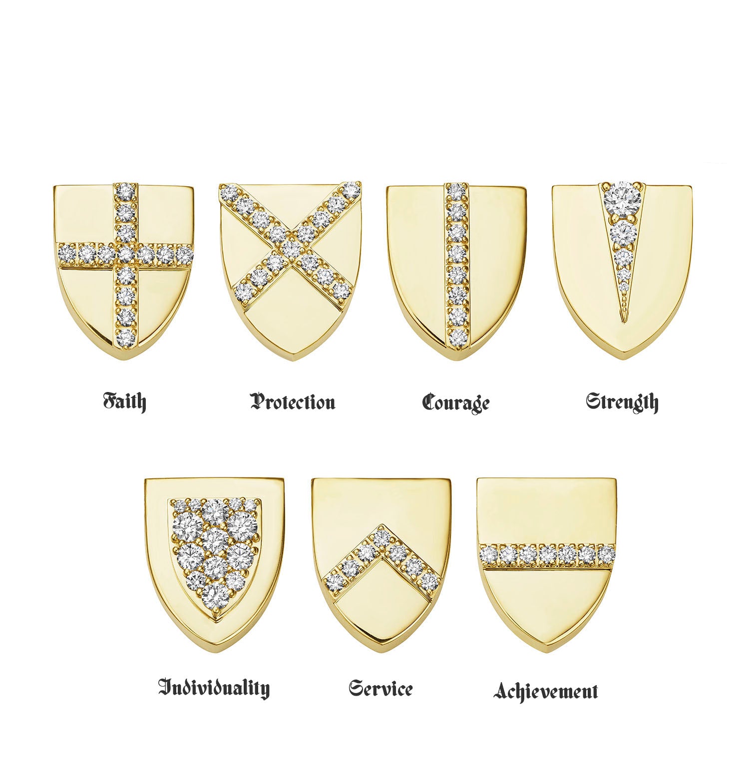 Radiating with romance and power, our Golden Age Collection was inspired by the jewelry and armor of the Elizabeth Era, AKA The Golden Age. Choose from 7 different shield meanings with an option to engrave the back. The 60" chain is designed to be convertible and worn in many different ways!