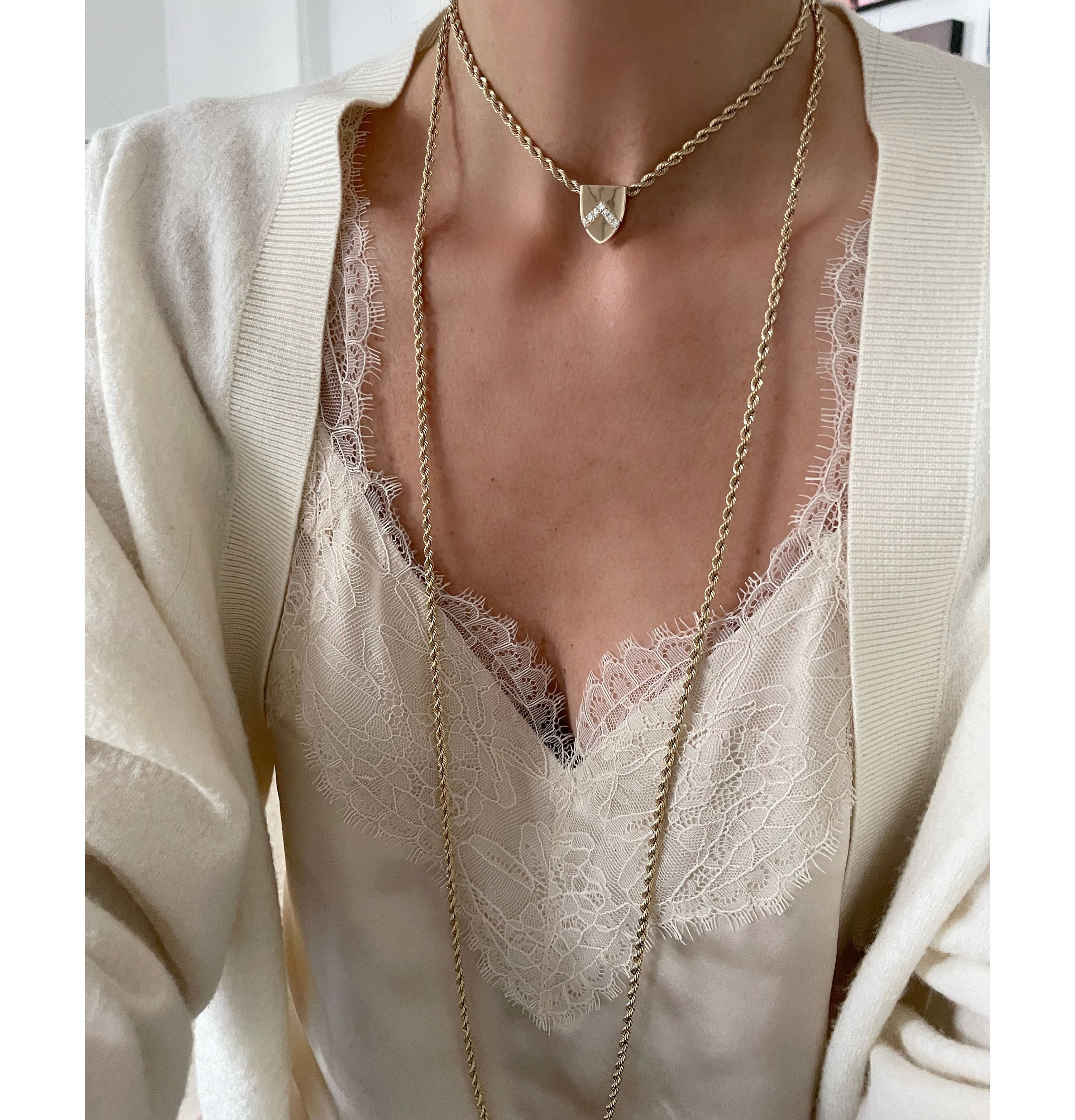This collection combines the two: extremely long, versatile chains & heraldry. We make the crown, you get to wear it.