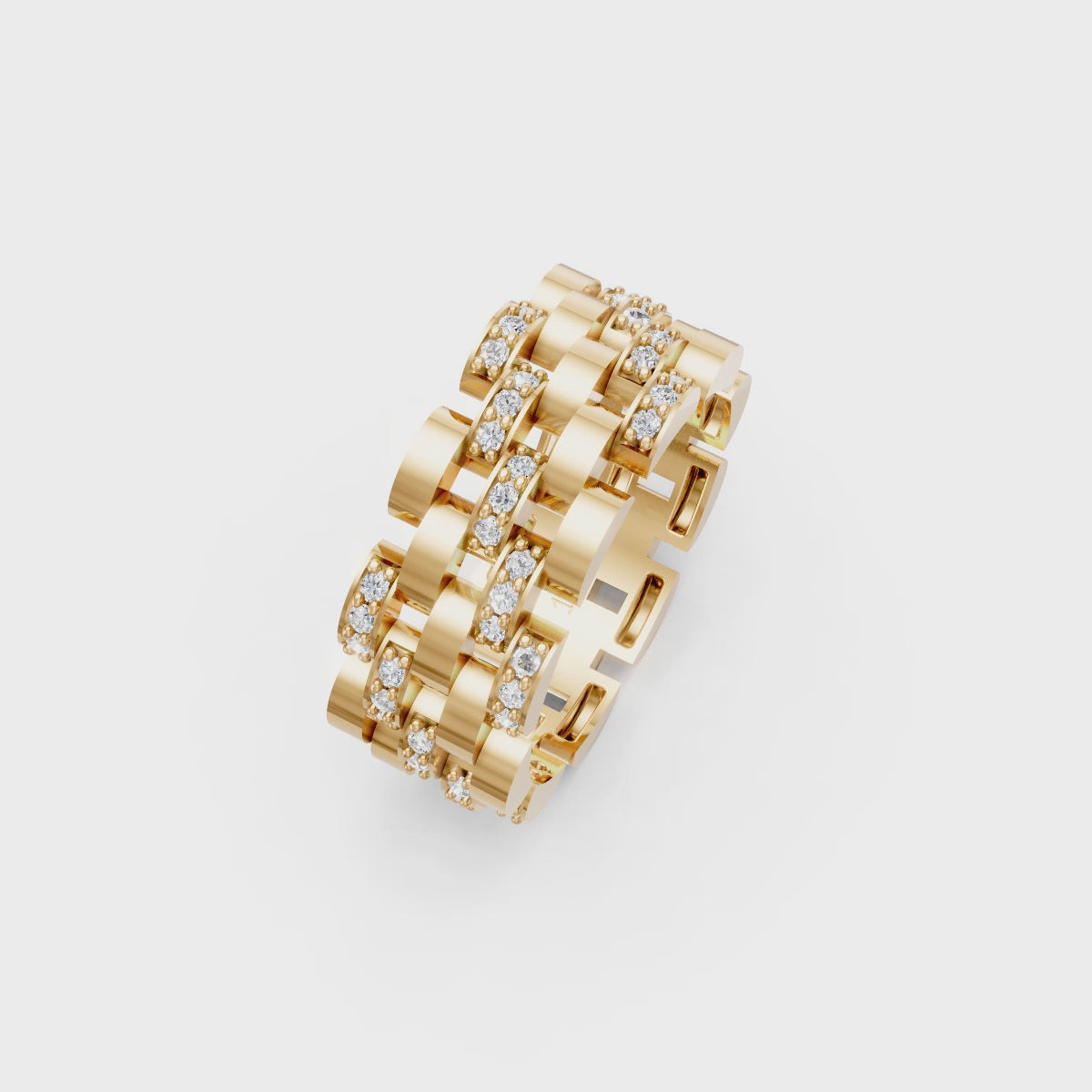 The classic cotton friendship bracelets of our youth, reimagined in an heirloom quality ring that can be worn year-round, for years to come. Solid 14k gold with meticulously set diamonds in three different patterns.