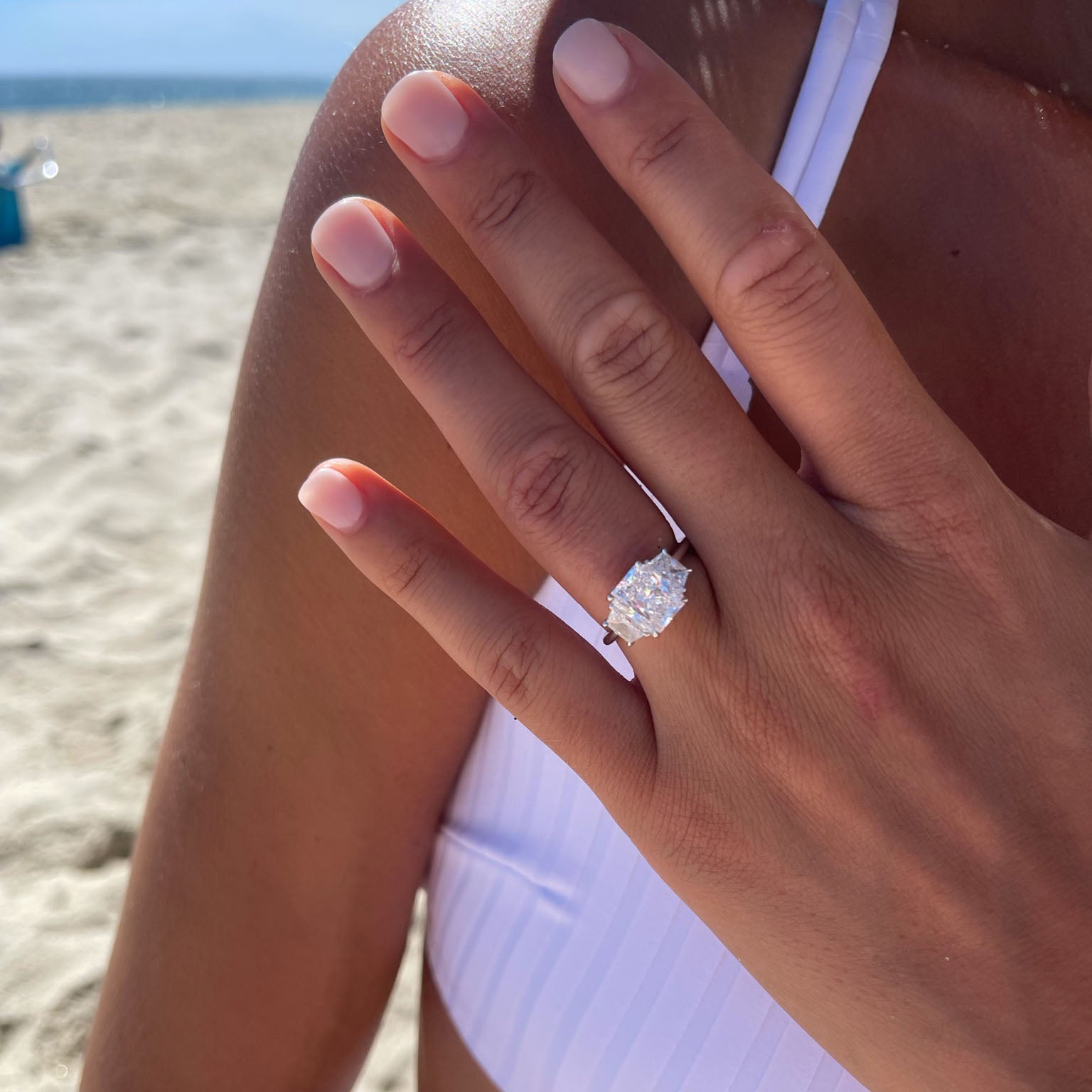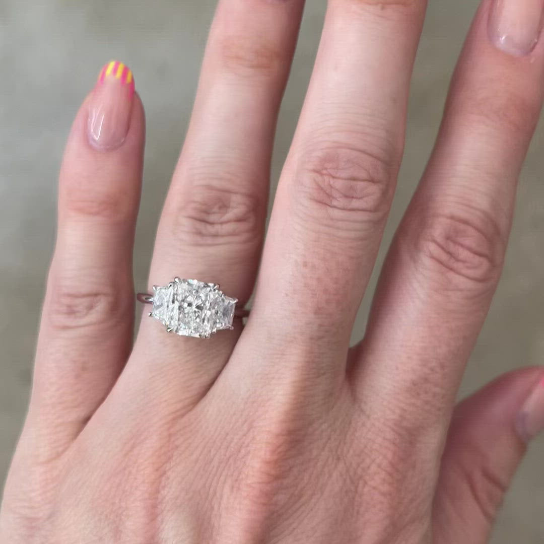 While we are not able to share exact details of our customer’s rings, we can provide estimates and starting price points to make something similar! Most of the 2 and 3 stone rings featured on our site fall between 2.5 - 4 total carats.