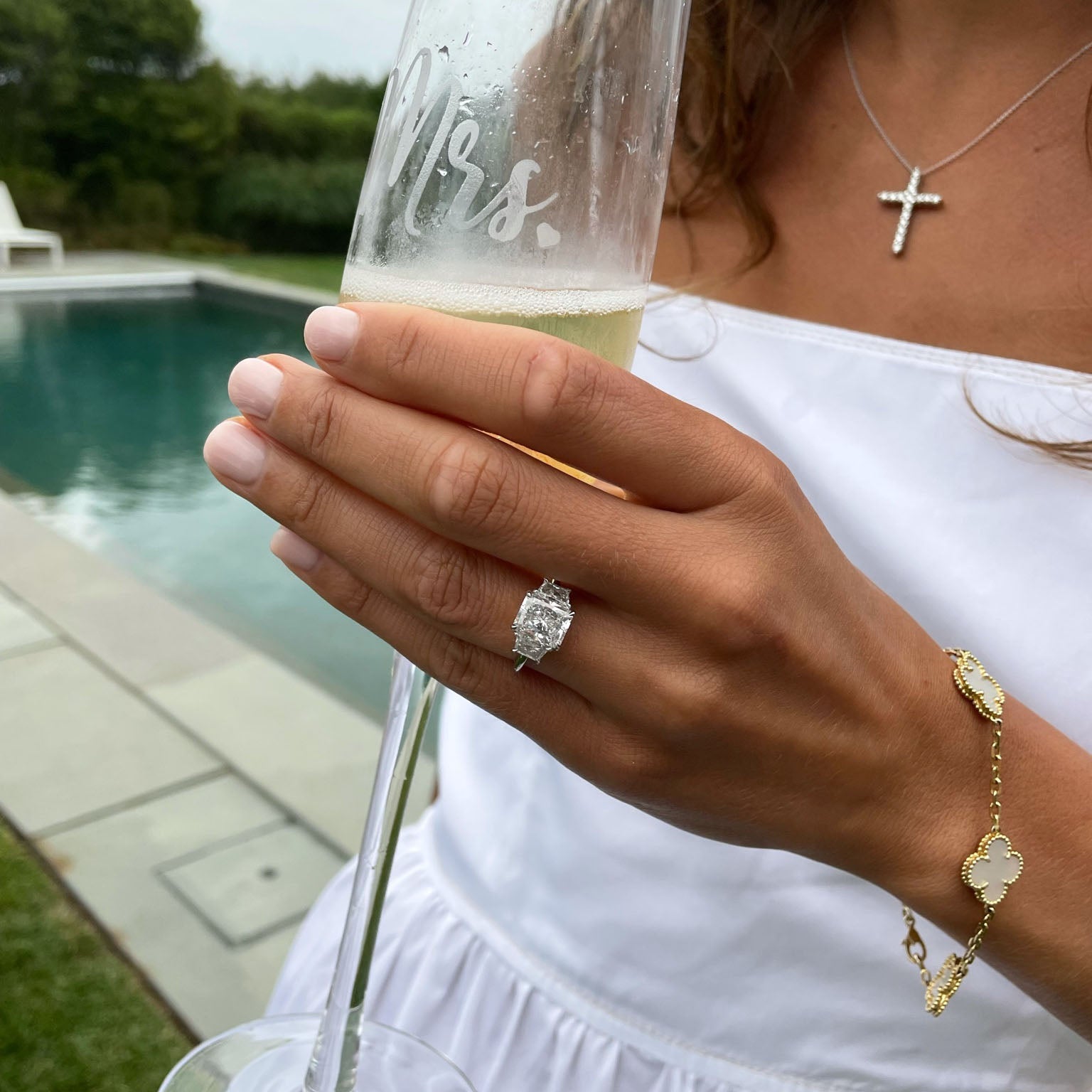 "Every single time I look down at my hand, I cannot contain my smile! I had an idea of what I wished my engagement ring to look like but when my fiancé opened the black KKane box, I lost my breath when I saw the ring inside. The way it sparkles in every room and sits so perfectly on my finger, I truly could not have dreamt of a more beautiful engagement ring. I cannot tell you how many people stop me to ask where my ring was made because they have never seen a ring so classic yet unique. I have several KKane pieces but will forever cherish this one! I feel so lucky to be a KKane bride!"