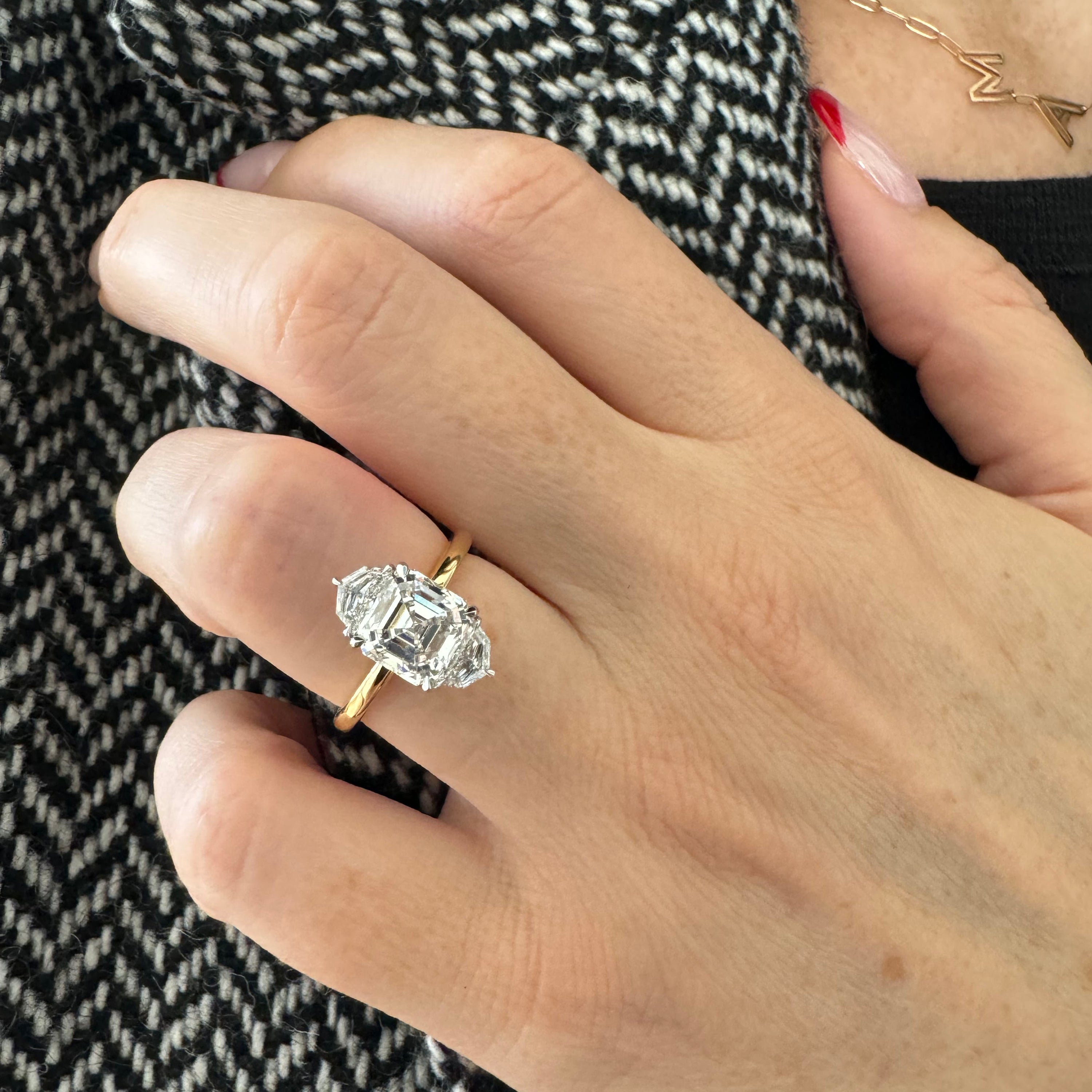 While we are not able to share exact details of our customer’s rings, we can provide estimates and starting price points to make something similar! Most of the 2 and 3 stone rings featured on our site fall between 2.5 - 4 total carats.