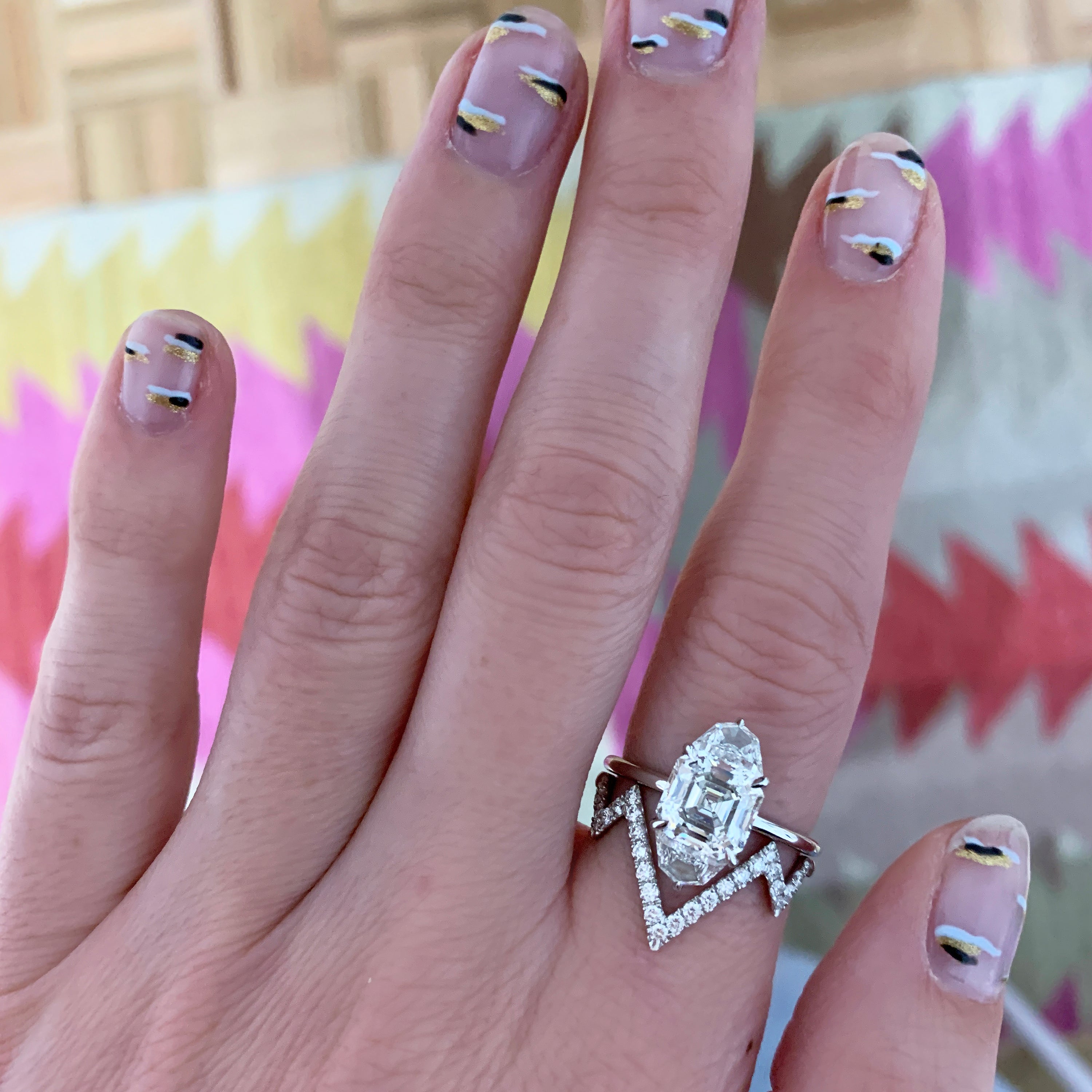 We only work with diamonds that have been independently graded and certified by the GIA, and that come from conflict free sources. The diamonds in our rings generally fall within the D-H color, VS2+ clarity range (with the occasional SI1 depending on cut!). WITH THAT SAID - we are firm believers that a diamond’s “off paper” characteristics, meaning the ones that are not officially “graded”, are just as important to its beauty as the graded ones. A stone can have amazing graded characteristics but be lacking character in person! This is why we always recommend working with an expert you trust when buying a diamond, vs. purchasing one over the internet.